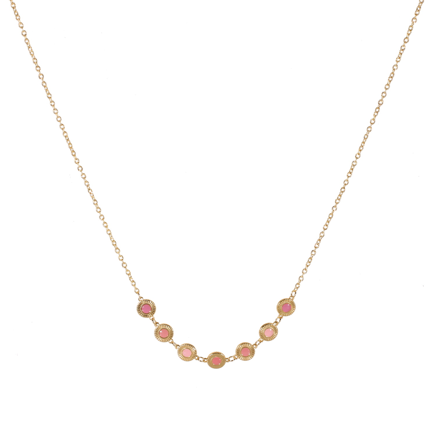 Description Collier composé d'une chaîne en acier doré et de sept pastilles rondes pavées d'émail de couleur rose. Fermoir mousqueton avec 5 cm de rallonge. Longueur 41+5 cm [Guide des tailles] Matière(s) Acier , Email . L'acier utilisé dans la bijouterie existe sous plusieurs qualités. Nous utilisons principalement la qualité 316L, qualité qui est utilisée en chirurgie. Cet acier est donc inoxydable et reste très résistant. Fermoir Mousqueton Couleur(s) dominante(s) Doré , Rose Public Adolescent , Adulte . Genre Femme , Fille . Saison Indémodable . Cliquez sur une matière, un thème, une couleur ou une collection pour voir tous les articles associés.