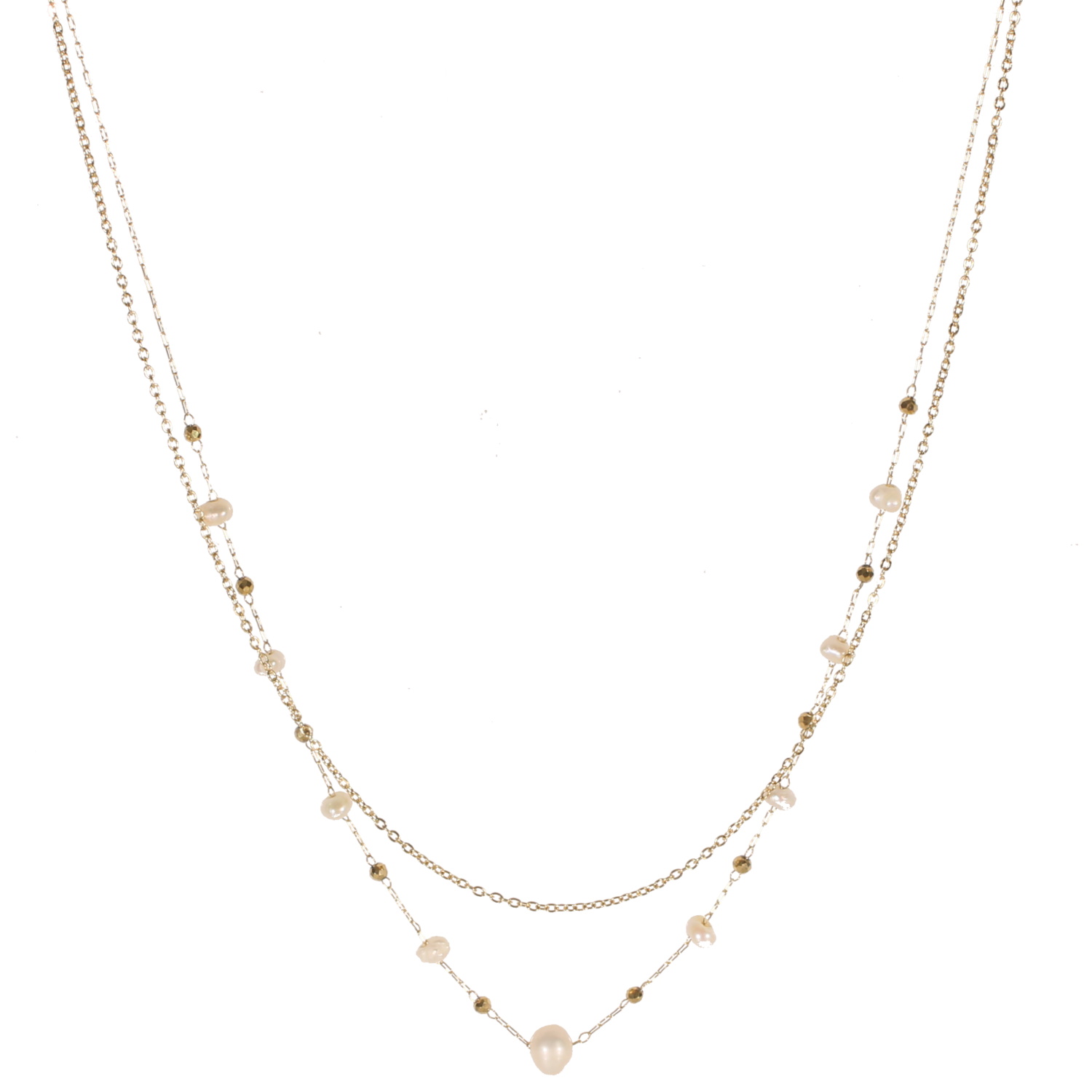 Description Collier double rangs composé d'une chaîne de 39 cm de long en acier doré, ainsi qu'une chaîne de 40 cm de long avec perles en acier doré et perles de nacre. Fermoir mousqueton avec 5 cm de rallonge. Longueur 39+5 cm [Guide des tailles] Matière(s) Acier , Nacre . L'acier utilisé dans la bijouterie existe sous plusieurs qualités. Nous utilisons principalement la qualité 316L, qualité qui est utilisée en chirurgie. Cet acier est donc inoxydable et reste très résistant. Fermoir Mousqueton Couleur(s) dominante(s) Blanc , Doré Public Adolescent , Adulte . Genre Femme , Fille . Saison Indémodable . Cliquez sur une matière, un thème, une couleur ou une collection pour voir tous les articles associés.
