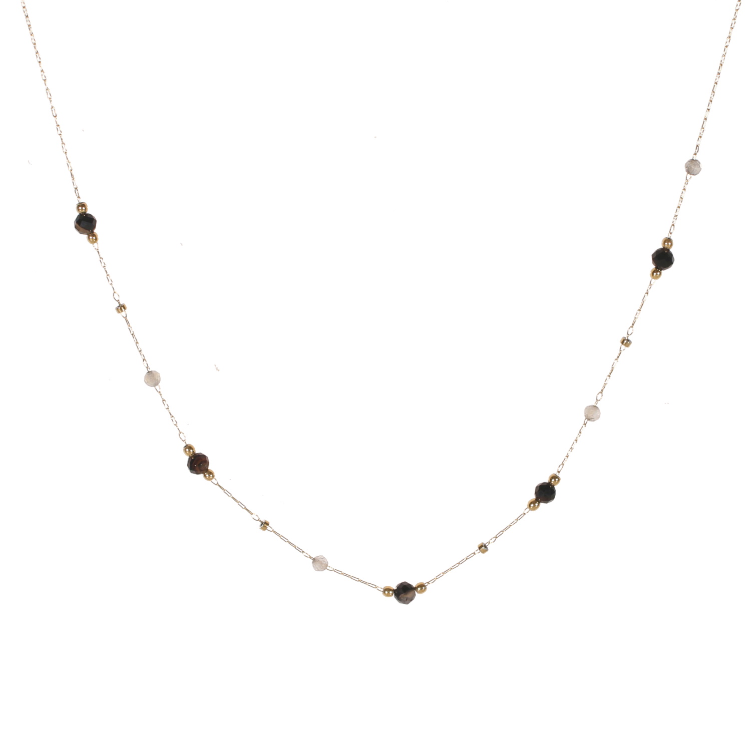 Description Collier composé d'une chaîne avec perles en acier doré et de perles de couleur grise et noire. Fermoir mousqueton avec 5 cm de rallonge. Longueur 39+5 cm [Guide des tailles] Largeur 4 mm Matière(s) Acier , Rocaille . L'acier utilisé dans la bijouterie existe sous plusieurs qualités. Nous utilisons principalement la qualité 316L, qualité qui est utilisée en chirurgie. Cet acier est donc inoxydable et reste très résistant. Fermoir Mousqueton Couleur(s) dominante(s) Doré , Gris , Noir Public Adolescent , Adulte . Genre Femme , Fille . Saison Indémodable . Cliquez sur une matière, un thème, une couleur ou une collection pour voir tous les articles associés.