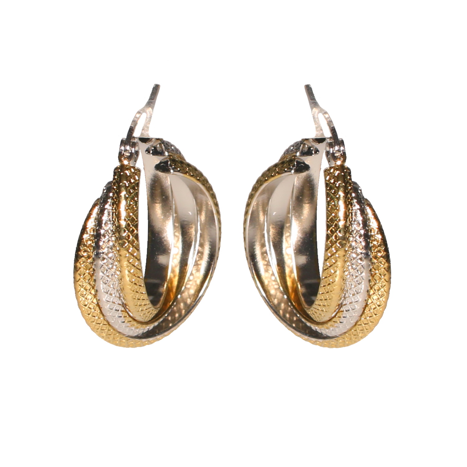 Description Boucles d'oreilles créoles trois fils entrelacés en acier doré et en acier argenté. Largeur 10 mm Diamètre 18/23 mm [Guide des tailles] Matière(s) Acier . L'acier utilisé dans la bijouterie existe sous plusieurs qualités. Nous utilisons principalement la qualité 316L, qualité qui est utilisée en chirurgie. Cet acier est donc inoxydable et reste très résistant. Fermoir Charnière Couleur(s) dominante(s) Argenté , Doré Public Adolescent , Adulte . Genre Femme , Fille . Saison Indémodable . Cliquez sur une matière, un thème, une couleur ou une collection pour voir tous les articles associés.