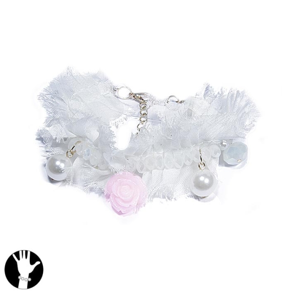 Bracelet fantaisie en métal argenté et imitation satin.