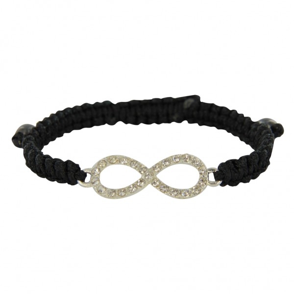 Bracelet fantaisie en métal argenté, textile et strass.