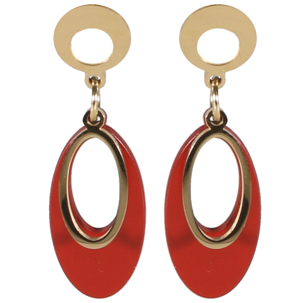 Description Boucles d'oreilles pendantes avec deux cercles ovales en acier doré et émail. Largeur 10 mm Hauteur 35 mm Matière(s) Acier , Email . L'acier utilisé dans la bijouterie existe sous plusieurs qualités. Nous utilisons principalement la qualité 316L, qualité qui est utilisée en chirurgie. Cet acier est donc inoxydable et reste très résistant. Fermoir Tiges poussettes Couleur(s) dominante(s) Doré , Rouge Public Adolescent , Adulte . Genre Femme , Fille . Saison Indémodable . Cliquez sur une matière, un thème, une couleur ou une collection pour voir tous les articles associés.