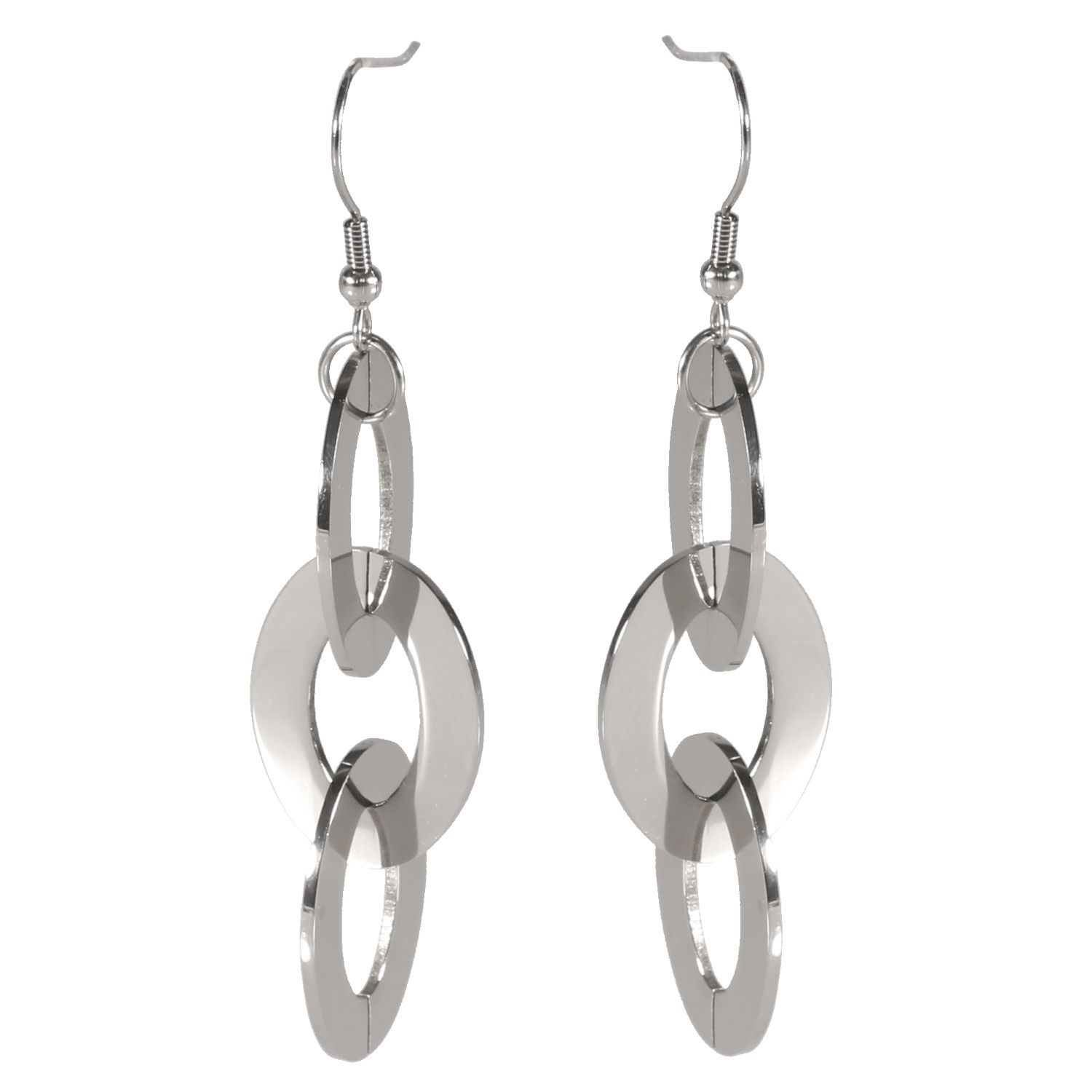 Description Boucles d'oreilles pendantes composées de trois cercles ovales en acier argenté. Largeur 19 mm Hauteur 76 mm Matière(s) Acier . L'acier utilisé dans la bijouterie existe sous plusieurs qualités. Nous utilisons principalement la qualité 316L, qualité qui est utilisée en chirurgie. Cet acier est donc inoxydable et reste très résistant. Fermoir Crochets Couleur(s) dominante(s) Argenté Public Adolescent , Adulte . Genre Femme , Fille . Saison Indémodable . Cliquez sur une matière, un thème, une couleur ou une collection pour voir tous les articles associés.