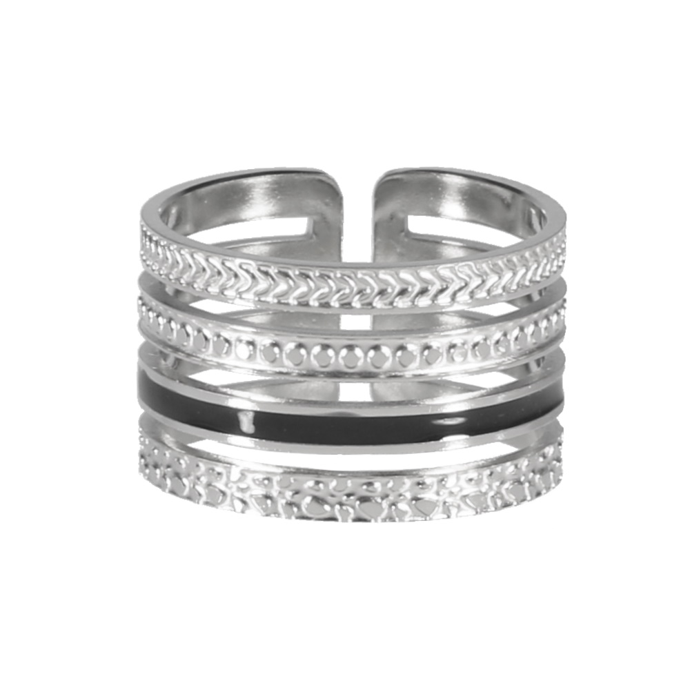 Description Bague quatre rangs en acier argenté et un anneau pavé d'émail de couleur noire. Taille ajustable. Largeur 12 mm Matière(s) Acier , Email . L'acier utilisé dans la bijouterie existe sous plusieurs qualités. Nous utilisons principalement la qualité 316L, qualité qui est utilisée en chirurgie. Cet acier est donc inoxydable et reste très résistant. Fermoir Aucun Couleur(s) dominante(s) Argenté , Noir Public Adolescent , Adulte . Genre Femme , Fille . Saison Indémodable . Cliquez sur une matière, un thème, une couleur ou une collection pour voir tous les articles associés.