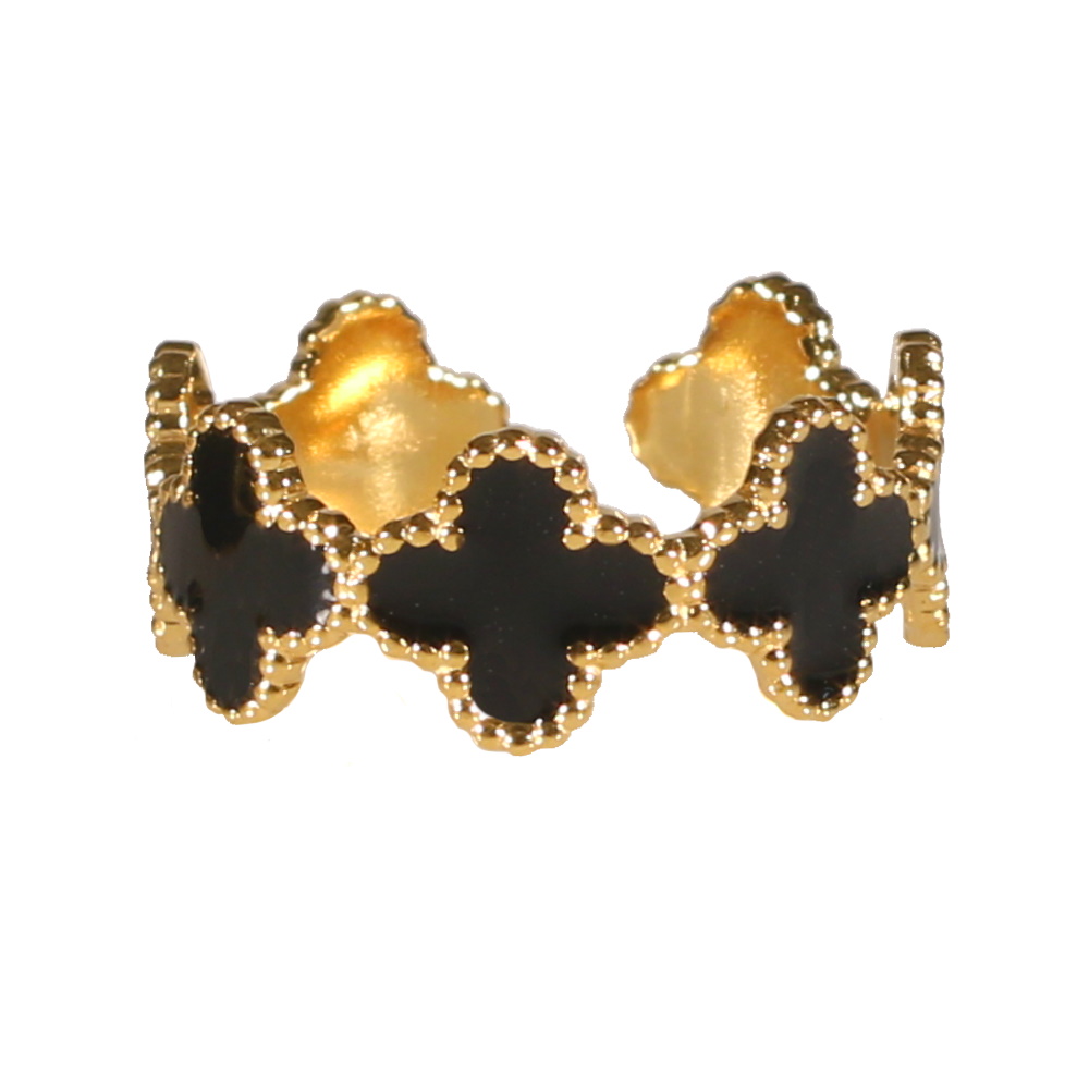 Description Bague en acier doré et de trèfles pavés d'émail de couleur noire. Taille ajustable. Largeur 8 mm Matière(s) Acier , Email . L'acier utilisé dans la bijouterie existe sous plusieurs qualités. Nous utilisons principalement la qualité 316L, qualité qui est utilisée en chirurgie. Cet acier est donc inoxydable et reste très résistant. Couleur(s) dominante(s) Doré , Noir Public Adolescent , Adulte . Genre Femme , Fille . Saison Indémodable . Thème(s) Nature . Cliquez sur une matière, un thème, une couleur ou une collection pour voir tous les articles associés.