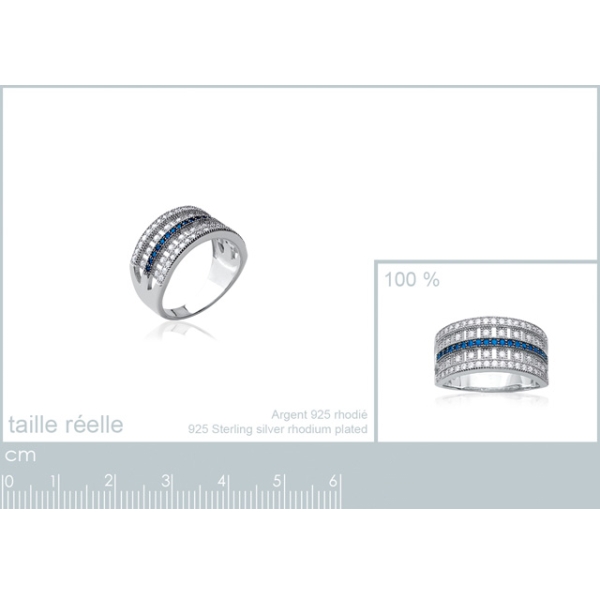 Bague en argent 925/000 rhodié, oxyde de zirconium et pierres synthétiques.
