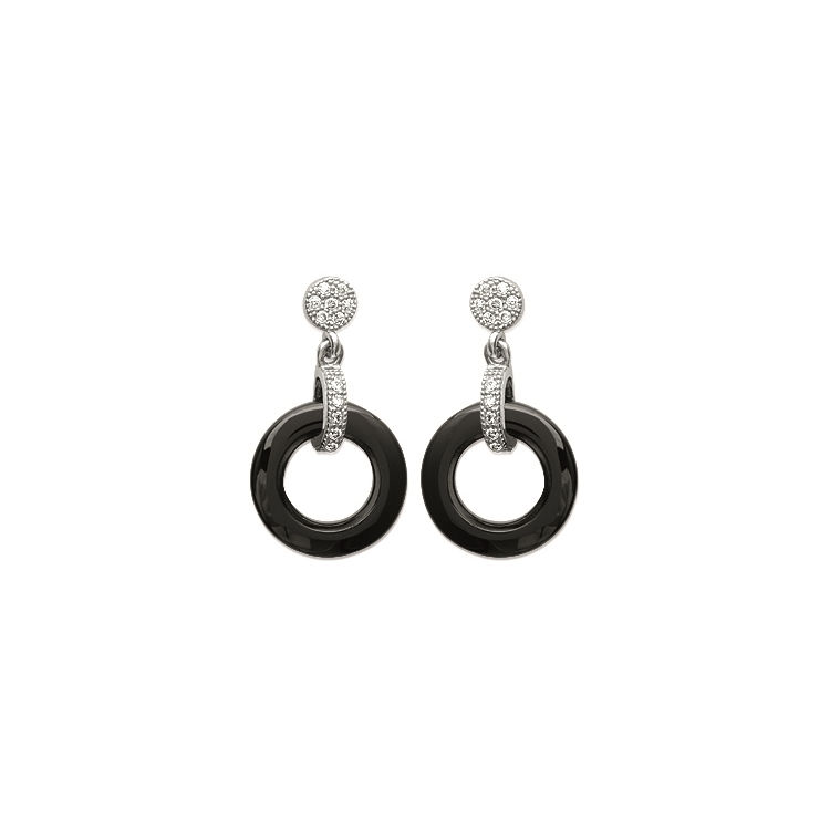 Boucles d'oreilles en argent 925/000 rhodié, oxyde de zirconium et céramique.