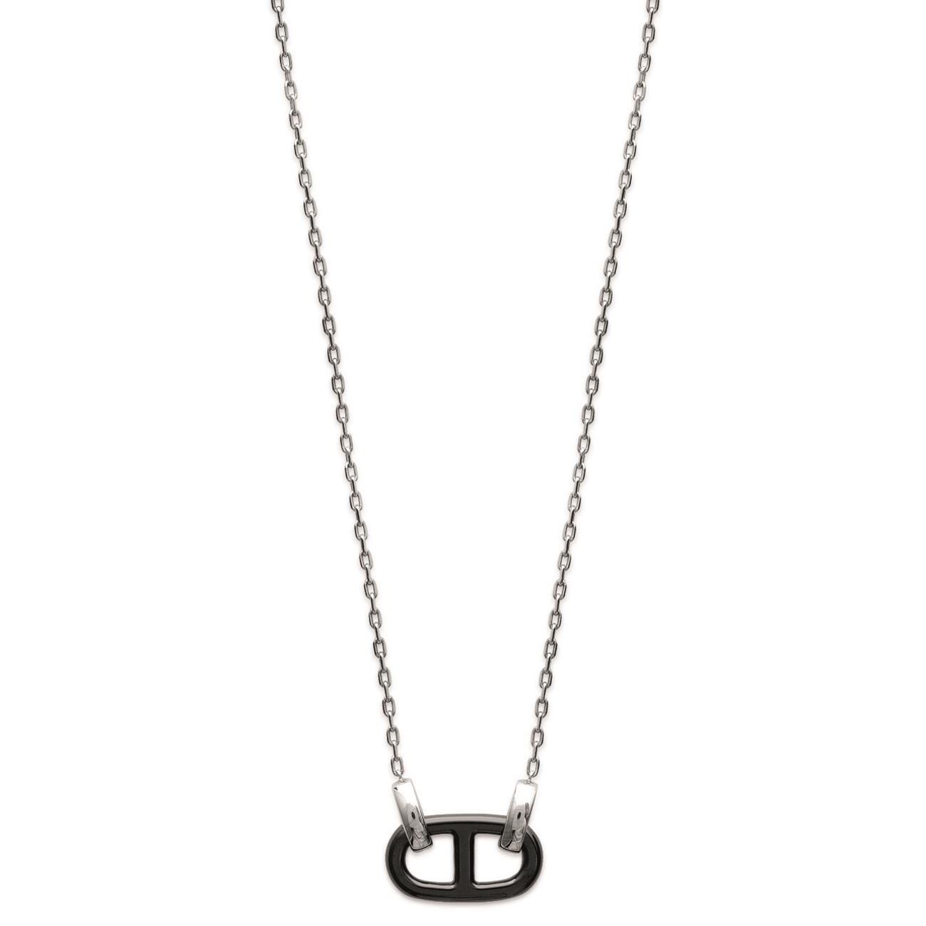 Collier en argent 925/000 rhodié, oxyde de zirconium et céramique.
