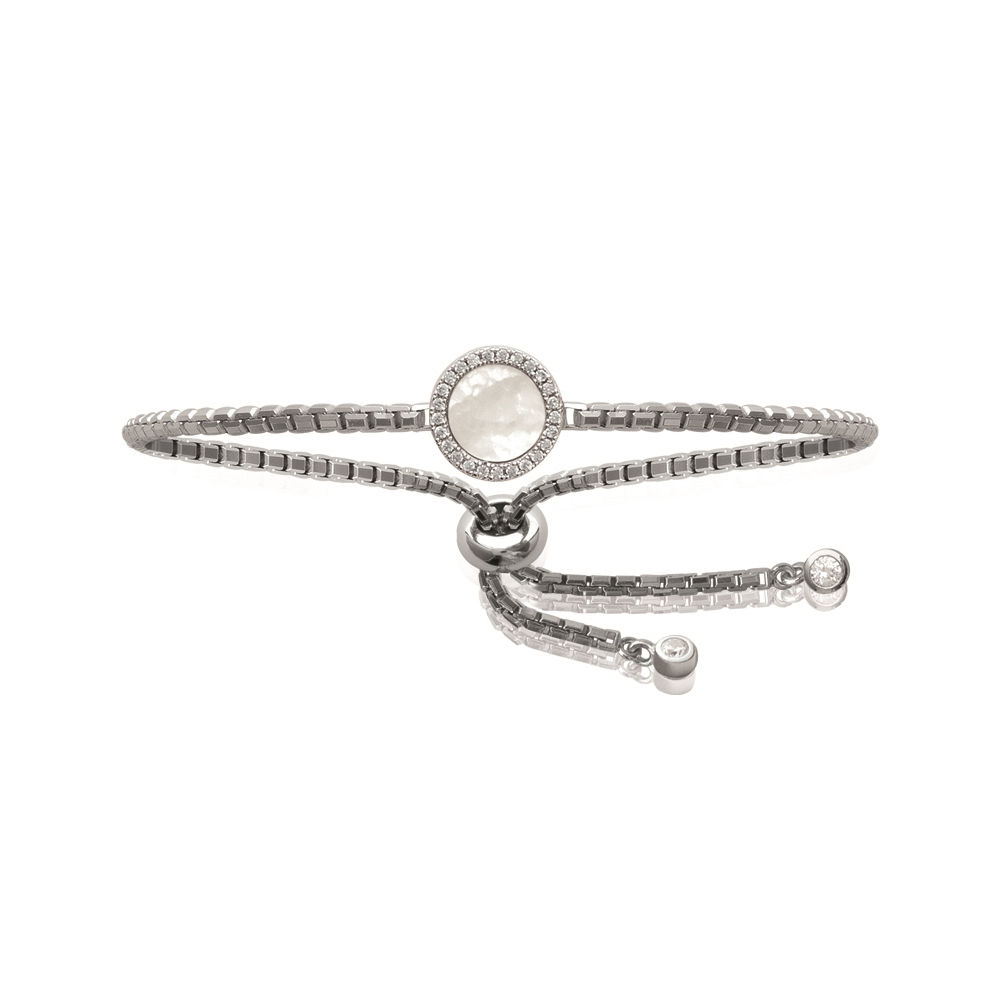Bracelet en argent 925/000 rhodié, nacre et oxyde de zirconium. Rond  Adulte Enfant Femme Fille Indémodable Bracelet en argent 925/000 rhodié, nacre et oxyde de zirconium. Rond  Adulte Enfant Femme Fille Indémodable