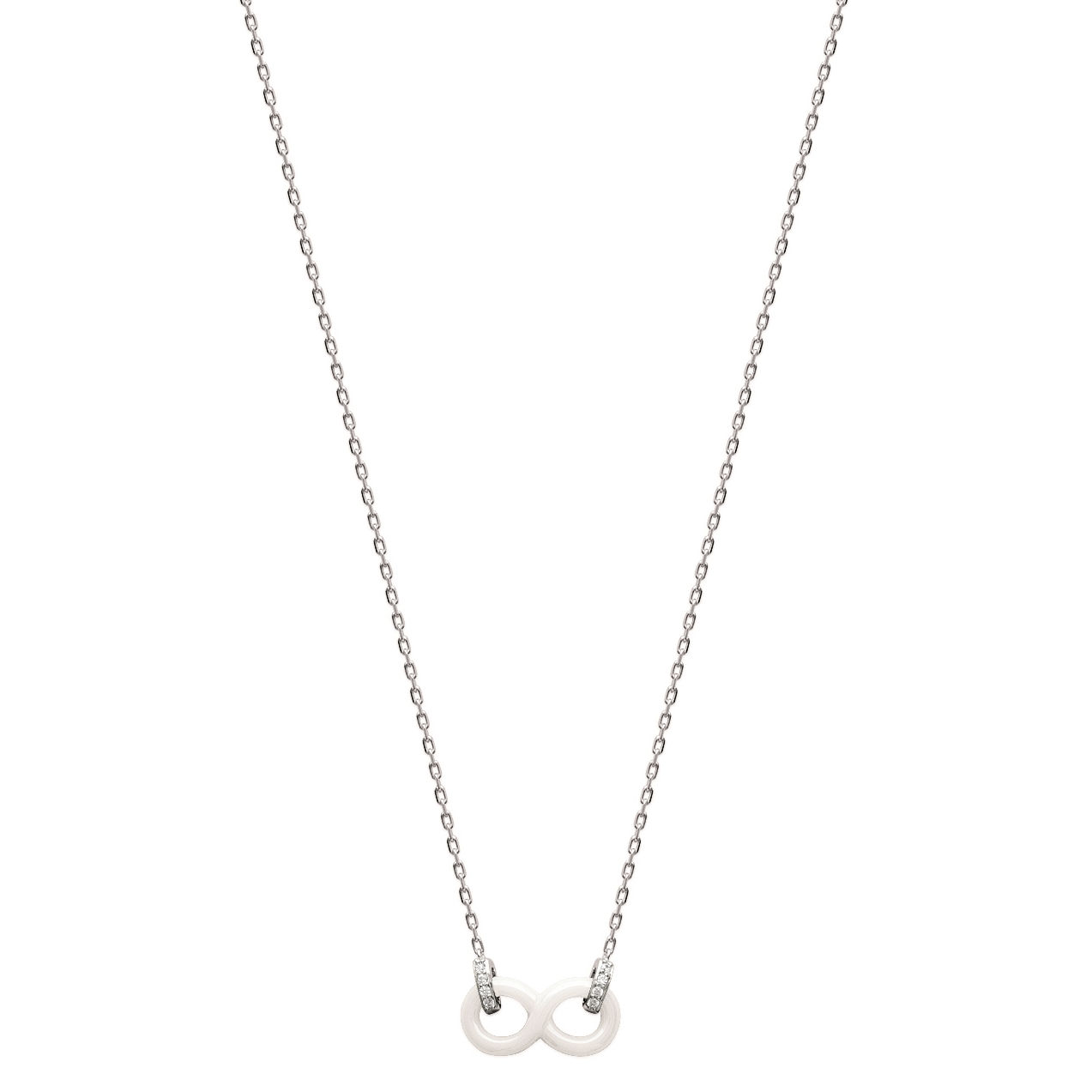 Collier en argent 925/000 rhodié, oxyde de zirconium et céramique blanche.