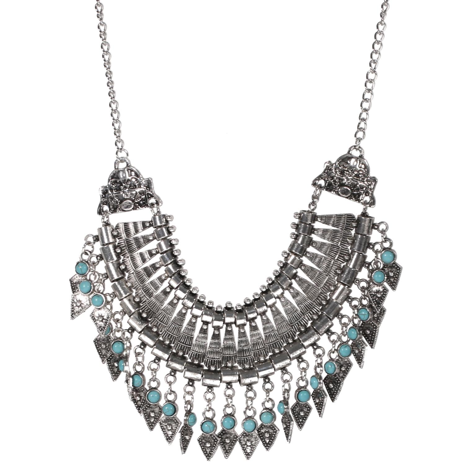 Collier fantaisie en métal argenté vieilli et rocaille.