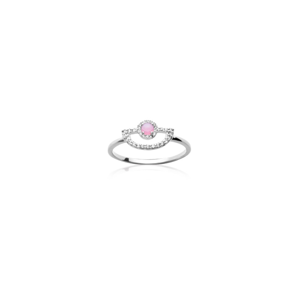 Bague en argent 925/000 rhodié, oxyde de zirconium et pierre synthétique.