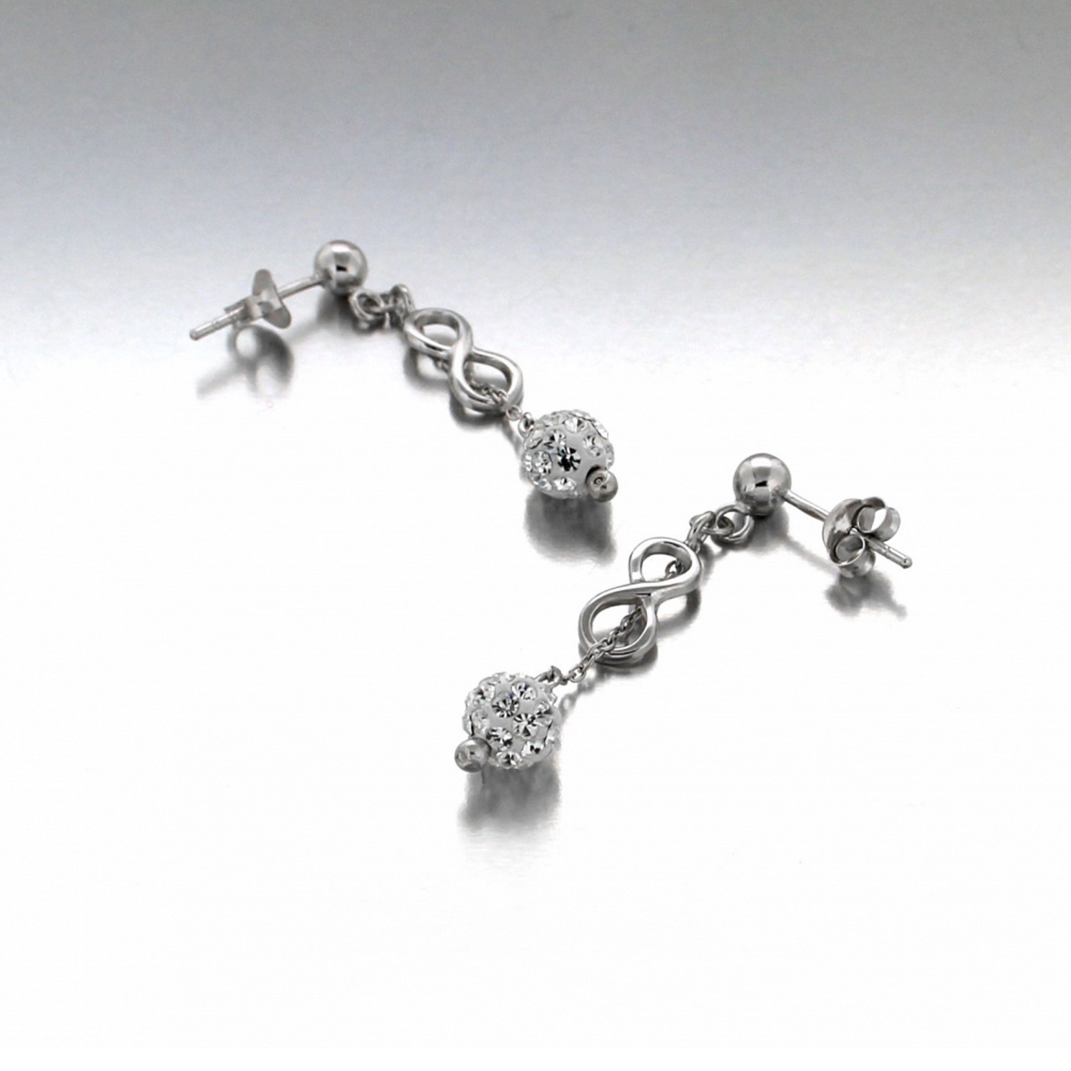 Boucles d'oreilles Infini en argent 925/000 rhodié et cristal blanc.