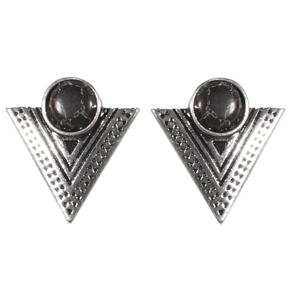 Boucles d'oreilles fantaisie en métal argenté vieilli et rocaille.