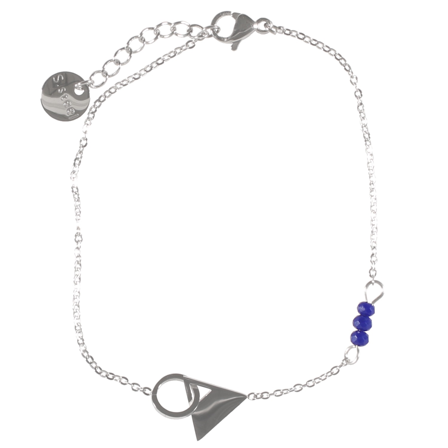 Description Bracelet avec cercle et triangle en acier et pierres de couleur bleue. Longueur 16.5+2 cm [Guide des tailles] Largeur 10 mm Matière(s) Acier , Rocaille . L'acier utilisé dans la bijouterie existe sous plusieurs qualités. Nous utilisons principalement la qualité 316L, qualité qui est utilisée en chirurgie. Cet acier est donc inoxydable et reste très résistant. Fermoir Mousqueton Couleur(s) dominante(s) Argenté , Bleu Public Adolescent , Adulte . Genre Femme , Fille . Saison Indémodable . Cliquez sur une matière, un thème, une couleur ou une collection pour voir tous les articles associés.