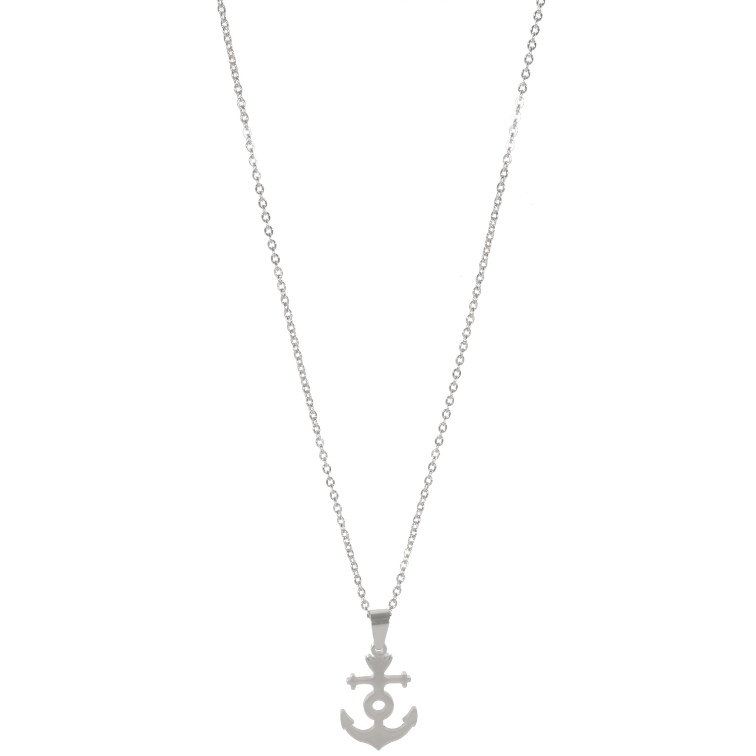 Collier avec pendentif ancre en acier argenté.