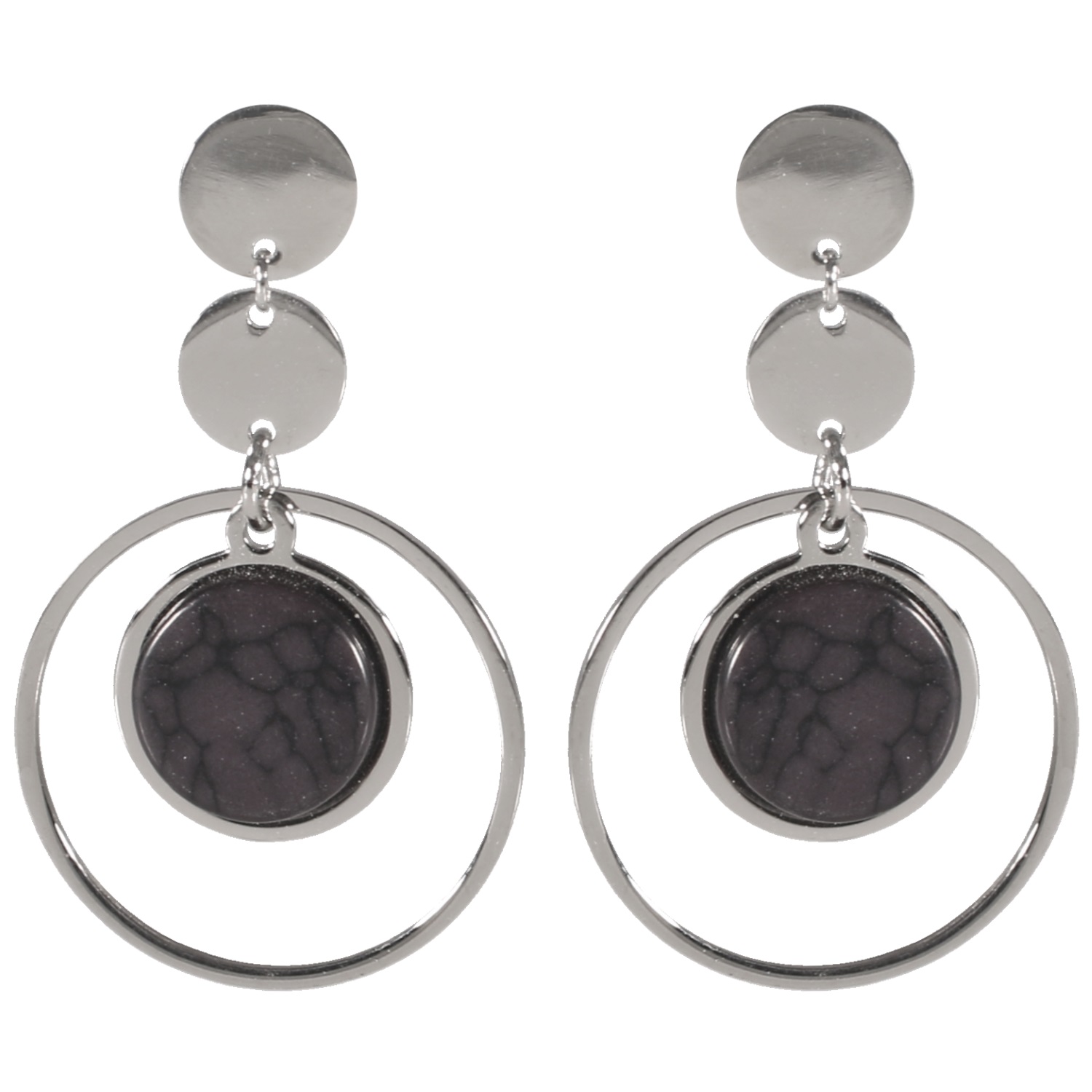 Description Boucles d'oreilles pendantes avec cercle en acier 316L argenté et pastille ronde en pierre de couleur. Largeur 25 mm Hauteur 42 mm Matière(s) Acier , Rocaille . L'acier utilisé dans la bijouterie existe sous plusieurs qualités. Nous utilisons principalement la qualité 316L, qualité qui est utilisée en chirurgie. Cet acier est donc inoxydable et reste très résistant. Fermoir Tiges poussettes Couleur(s) dominante(s) Argenté , Noir Public Adolescent , Adulte . Genre Femme , Fille . Saison Indémodable . Cliquez sur une matière, un thème, une couleur ou une collection pour voir tous les articles associés.