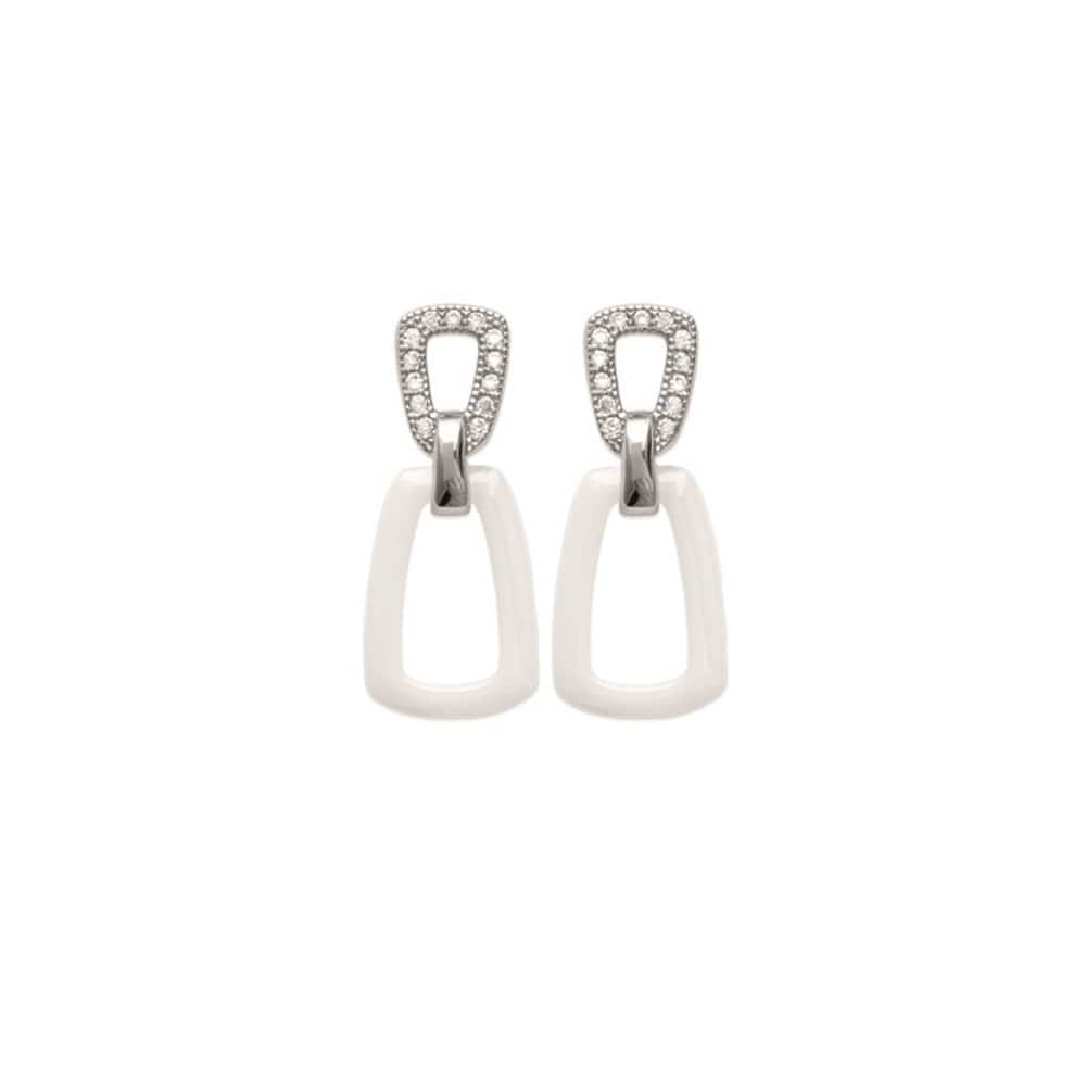 Boucles d'oreilles pendantes en argent 925/000 rhodié, oxydes de zirconium et céramique.