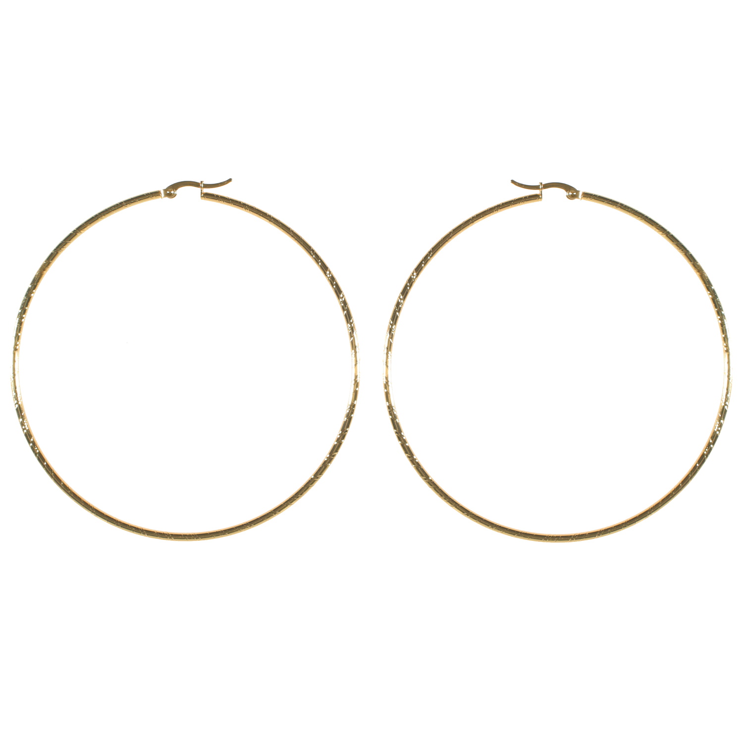 Description Boucles d'oreilles créoles en acier doré. Largeur 2 mm Diamètre 80 mm [Guide des tailles] Matière(s) Acier . L'acier utilisé dans la bijouterie existe sous plusieurs qualités. Nous utilisons principalement la qualité 316L, qualité qui est utilisée en chirurgie. Cet acier est donc inoxydable et reste très résistant. Fermoir Charnière Couleur(s) dominante(s) Doré Public Adolescent , Adulte . Genre Femme , Fille . Saison Indémodable . Cliquez sur une matière, un thème, une couleur ou une collection pour voir tous les articles associés.