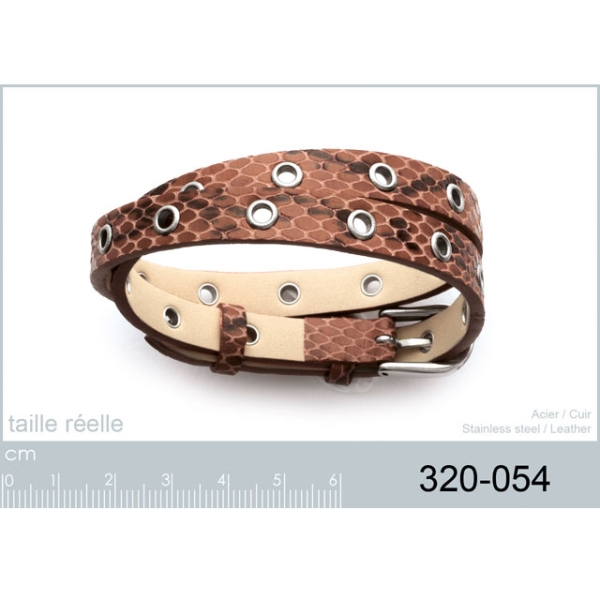 Description Bracelet en acier et cuir véritable. Longueur 19 cm [Guide des tailles] Largeur 8 mm Matière(s) Acier , Cuir . L'acier utilisé dans la bijouterie existe sous plusieurs qualités. Nous utilisons principalement la qualité 316L, qualité qui est utilisée en chirurgie. Cet acier est donc inoxydable et reste très résistant. Fermoir Ceinture À noter Ajustable Couleur(s) dominante(s) Marron Public Adulte . Genre Femme . Saison Indémodable . Cliquez sur une matière, un thème, une couleur ou une collection pour voir tous les articles associés.