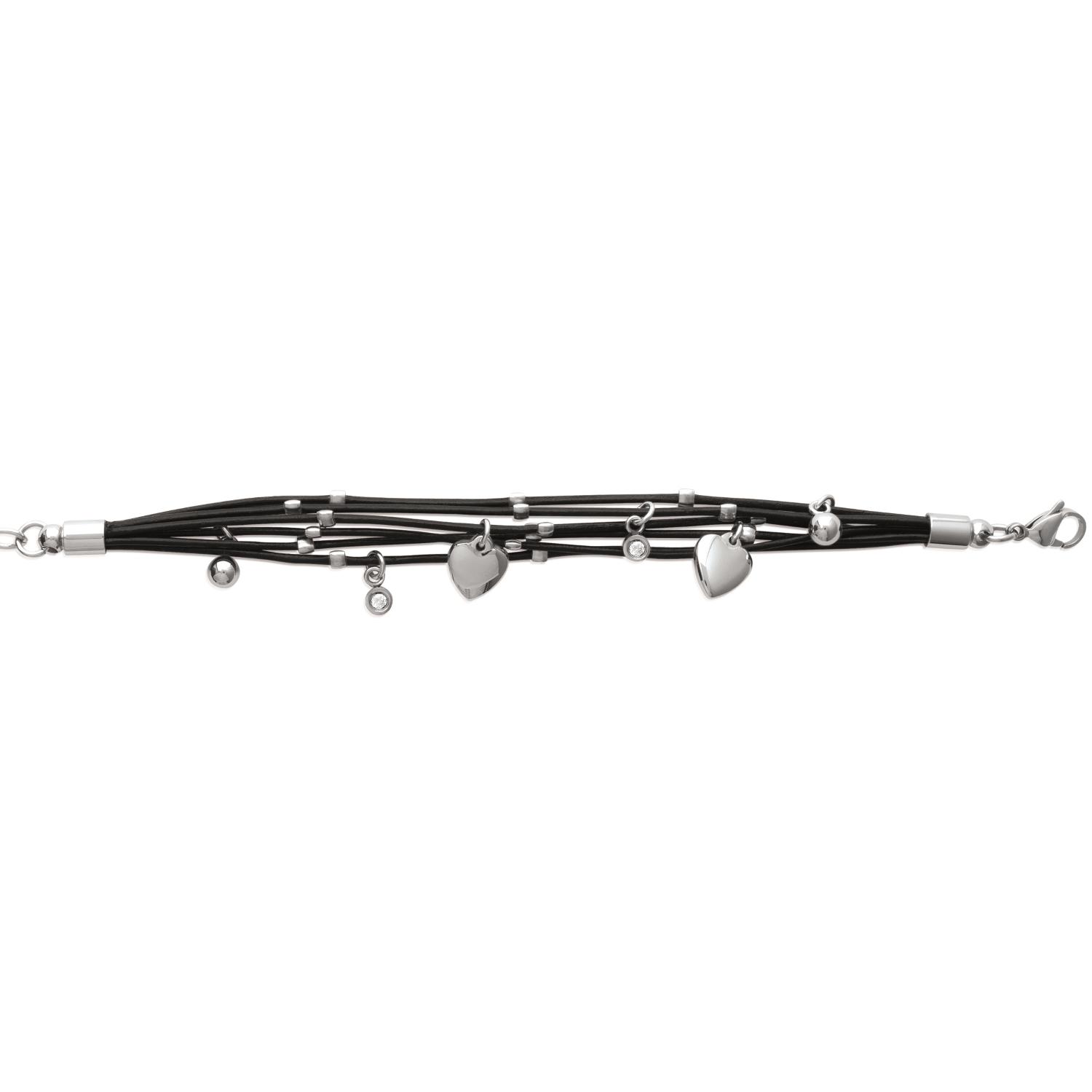 Bracelet en acier, cuir et oxyde de zirconium.