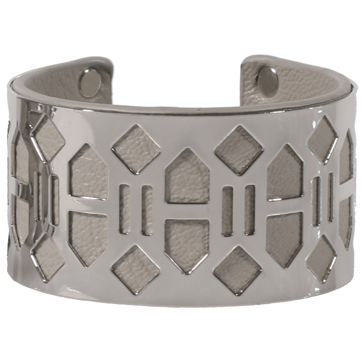 Description Bracelet manchette en acier et cuir. Cliquez sur une matière, un thème, une couleur ou une collection pour voir tous les articles associés.