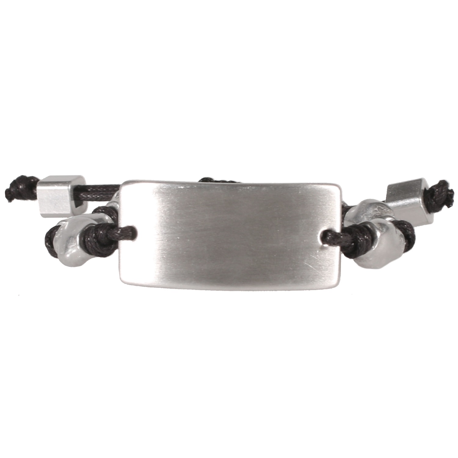 Bracelet fantaisie multi rangs avec cordon en coton ciré et métal argenté.
