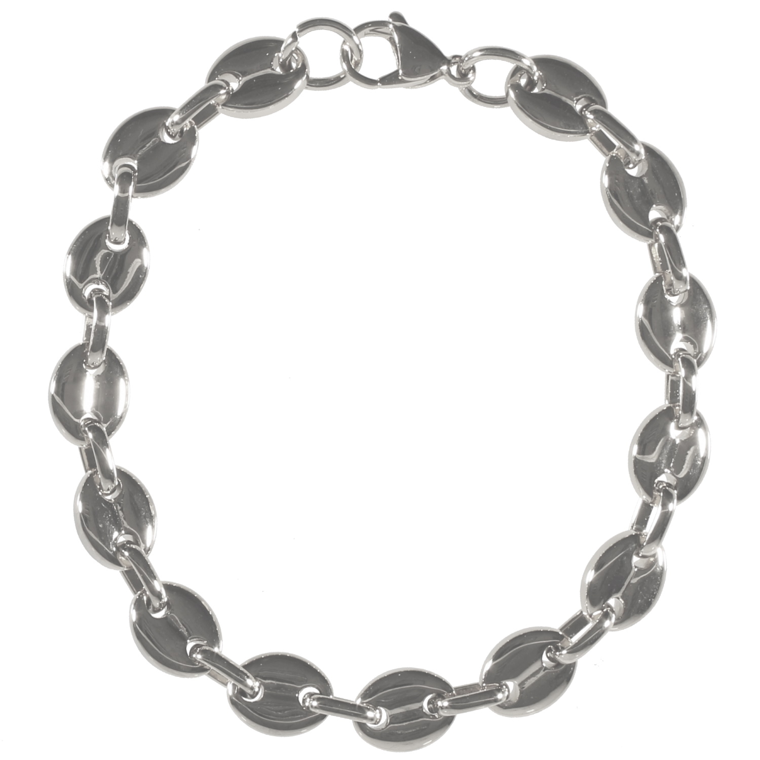 Description Bracelet grain de café en acier argenté. Longueur 21 cm [Guide des tailles] Largeur 10 mm Matière(s) Acier . L'acier utilisé dans la bijouterie existe sous plusieurs qualités. Nous utilisons principalement la qualité 316L, qualité qui est utilisée en chirurgie. Cet acier est donc inoxydable et reste très résistant. Fermoir Mousqueton Couleur(s) dominante(s) Argenté Public Adolescent , Adulte . Genre Garçon , Homme . Saison Indémodable . Collection Homme actuel Rayon en magasin T41 Cliquez sur une matière, un thème, une couleur ou une collection pour voir tous les articles associés.