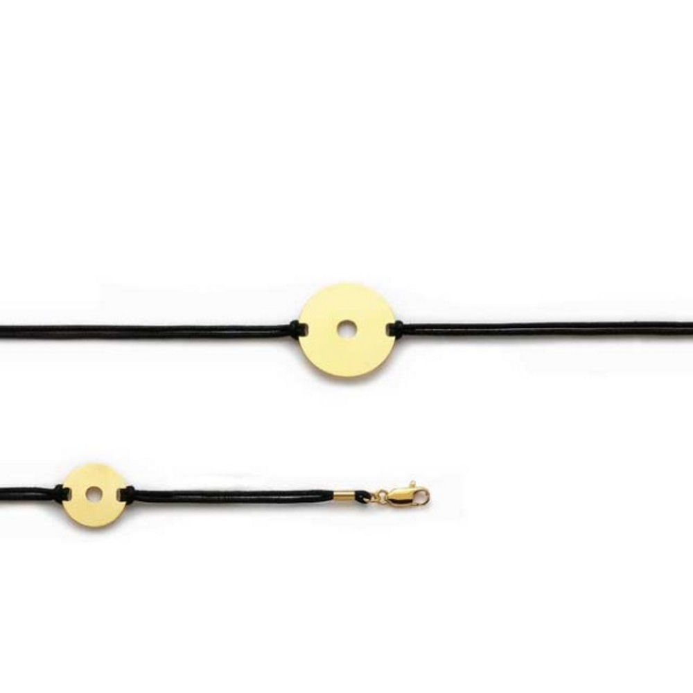 Bracelet en plaqué-or et cordon en cuir noir.