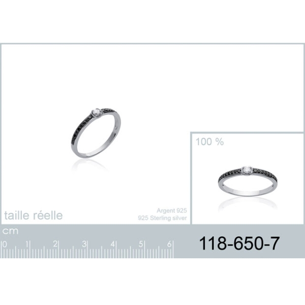 Description Bague en argent 925/000 rhodié, oxyde de zirconium et pierres synthétiques. Largeur 3 mm Matière(s) Argent 925 rhodié , Pierre synthétique , Zirconium . Afin de protéger votre bijou de l'oxydation naturelle de l'argent, il est recouvert d'une couche de rhodium (un métal rare et précieux) qui garantira sa brillance dans le temps et préviendra les risques d'allergie. Notez cependant, que le bijou est alors d'une teinte plus grisée et moins brillante que l'argent non rhodié. Poids d'argent 1,72 gramme(s) Couleur(s) dominante(s) Noir Public Adulte . Genre Femme . Saison Indémodable . Cliquez sur une matière, un thème, une couleur ou une collection pour voir tous les articles associés.