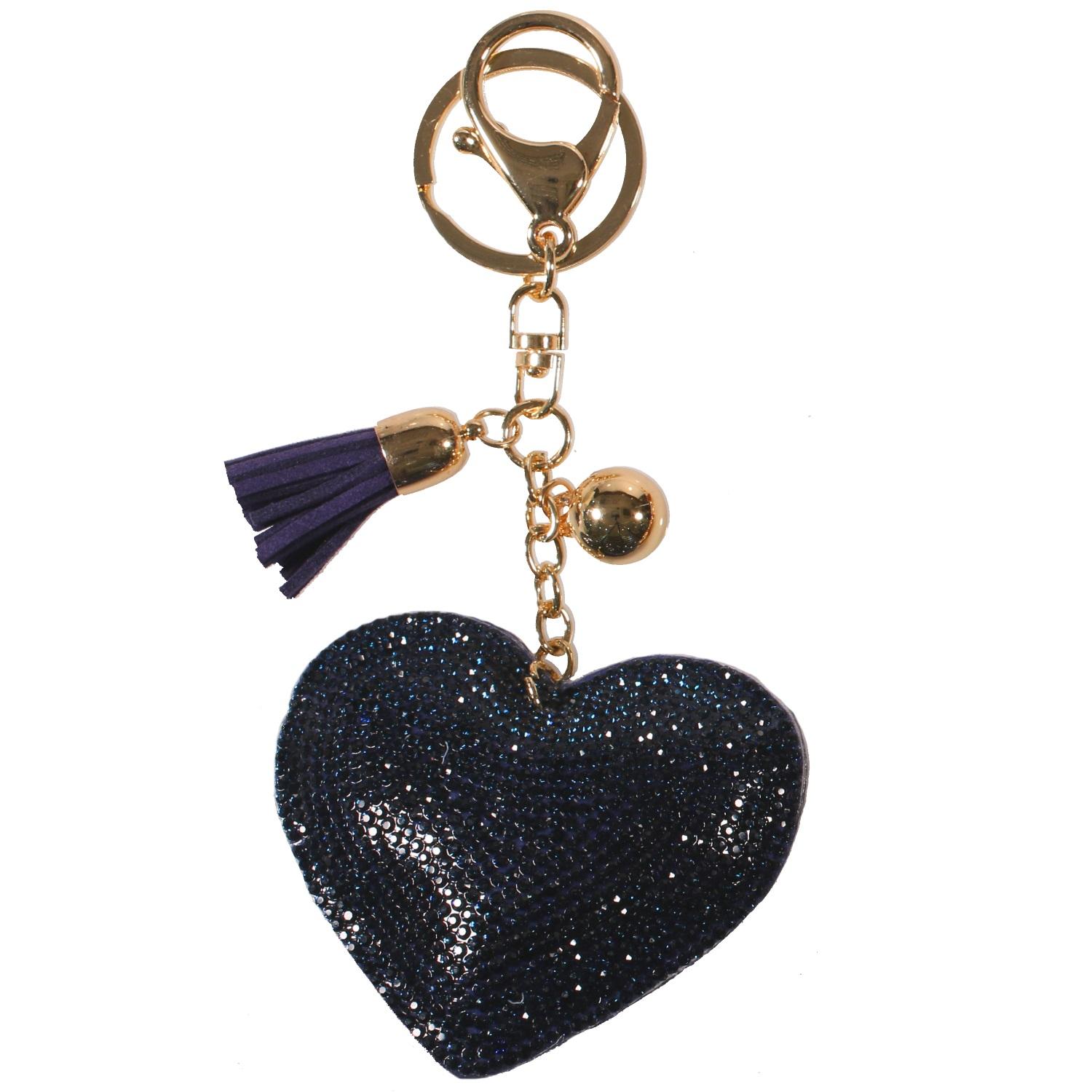 Porte-clés fantaisie en métal doré, textile, suédine et cristaux synthétiques. Coeur  Adolescent Adulte Amour Femme Fille Indémodable