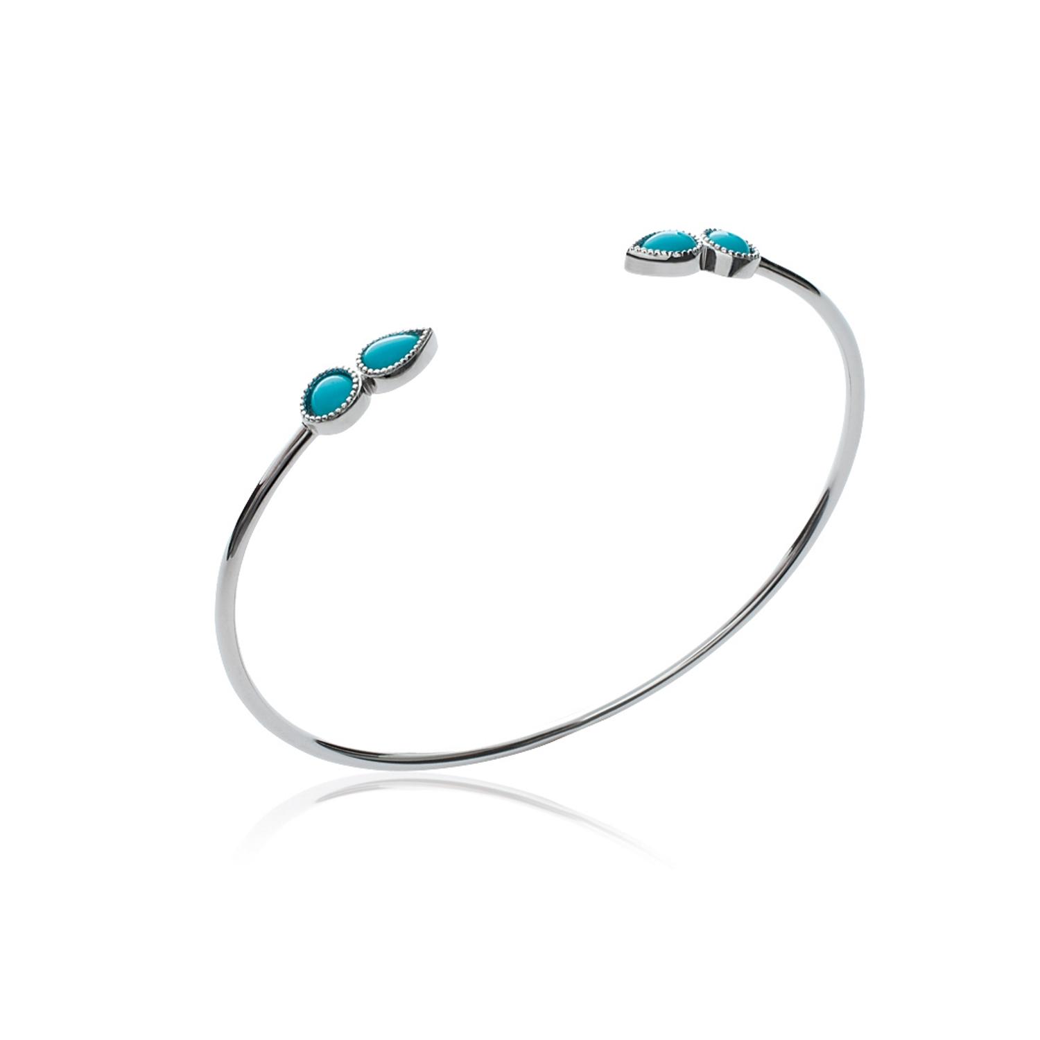 Bracelet jonc rigide en argent 925/000 rhodié et pierre d'imitation turquoise.