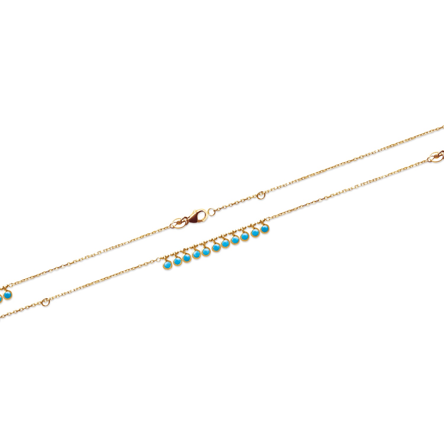 Description Bracelet en plaqué or et pierres d'imitation turquoise. Longueur 16/18 cm [Guide des tailles] Largeur 5 mm Matière(s) Pierre synthétique , Plaqué or . Nos bijoux en plaqué or sont faits sur une base de laiton et recouverts d'or 18 carats à 3 microns sans dispersion. Cela signifie que nous garantissons 3 microns d'or sur n'importe quelle partie du bijou. Sur la plupart de nos bijoux empierrés, nous montons à 5 microns d'or 18 carats. Pour finir, nous faisons également une finition avec de l'or 24 carats afin de donner un plus bel éclat à nos bijoux. Fermoir Mousqueton Couleur(s) dominante(s) Bleu , Doré Public Adolescent , Adulte . Genre Femme , Fille . Saison Indémodable . Collection La petite Parisienne Rayon en magasin T82 Cliquez sur une matière, un thème, une couleur ou une collection pour voir tous les articles associés.