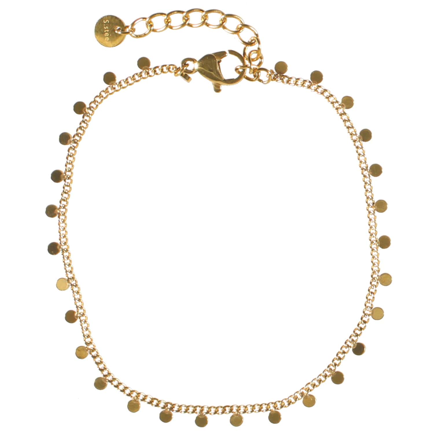Description Bracelet avec pampilles en acier doré. Fermoir mousqueton avec rallonge de 3 cm. Cliquez sur une matière, un thème, une couleur ou une collection pour voir tous les articles associés.