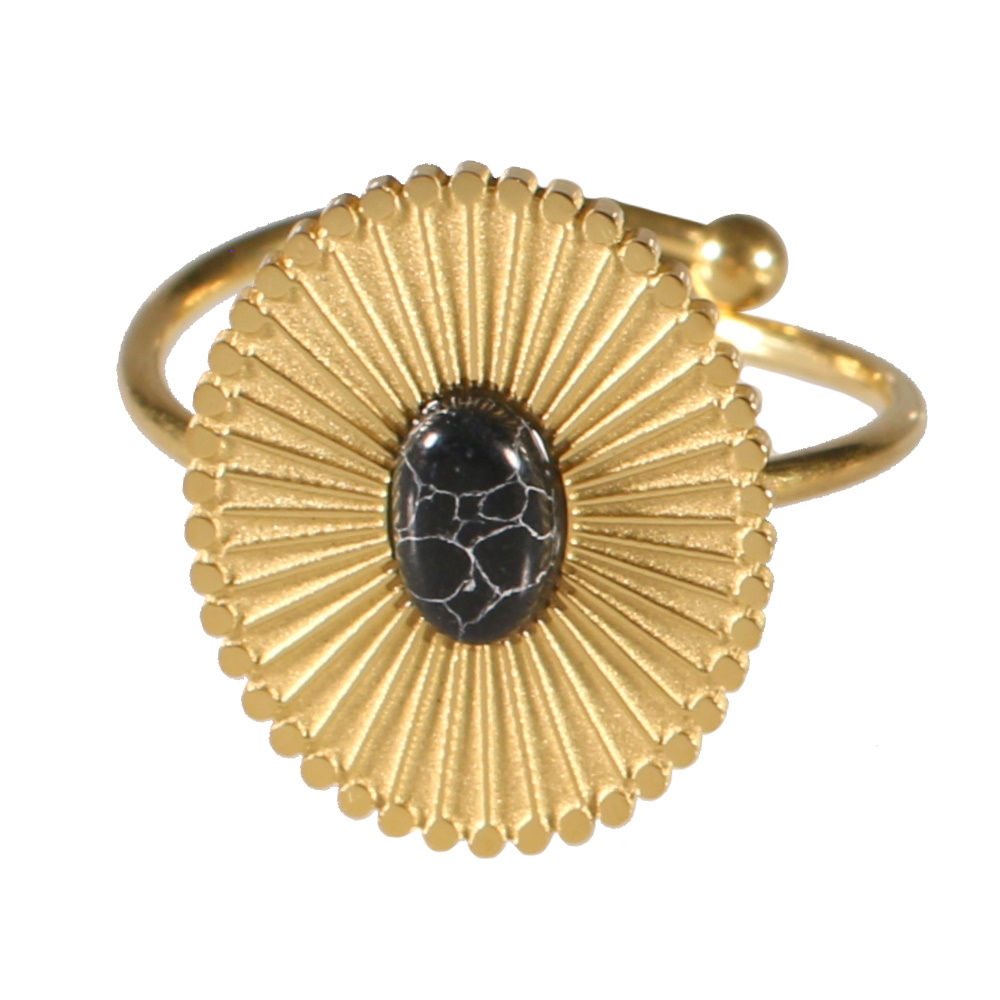 Description Bague composée d'une pastille ovale avec motif en relief en acier doré surmontée d'une pierre de couleur noire. Taille ajustable. Largeur 17 mm Matière(s) Acier , Rocaille . L'acier utilisé dans la bijouterie existe sous plusieurs qualités. Nous utilisons principalement la qualité 316L, qualité qui est utilisée en chirurgie. Cet acier est donc inoxydable et reste très résistant. Fermoir Aucun Couleur(s) dominante(s) Doré , Noir Public Adolescent , Adulte . Genre Femme , Fille . Saison Indémodable . Cliquez sur une matière, un thème, une couleur ou une collection pour voir tous les articles associés.