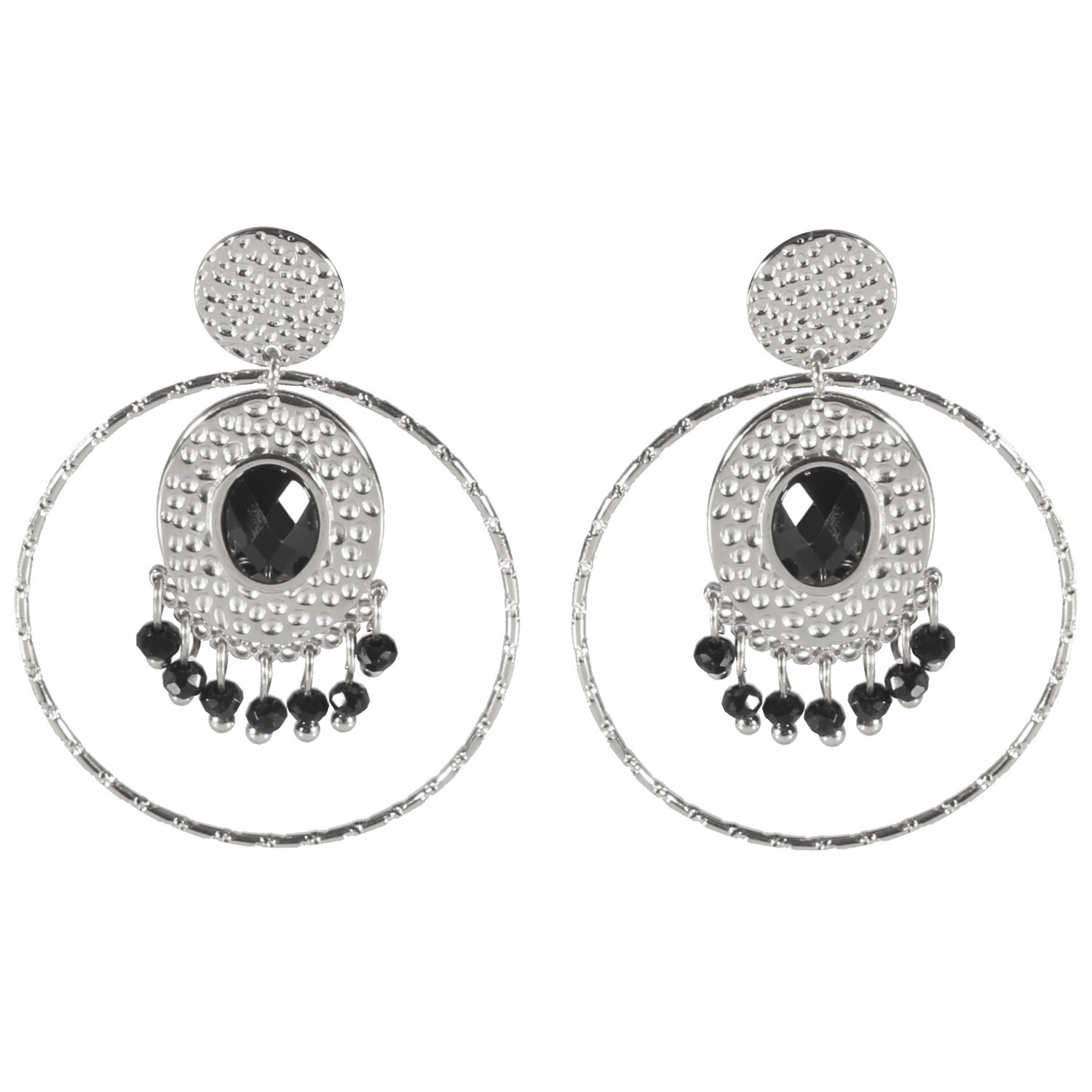 Description Boucles d'oreilles pendantes composées d'une pastille ronde martelée et d'un cercle en acier argenté, d'une pastille ovale martelée en acier argenté surmontée d'une pierre de couleur noire, et des pampilles de perles de couleur noire. Largeur 35 mm Hauteur 44 mm Matière(s) Acier , Rocaille . L'acier utilisé dans la bijouterie existe sous plusieurs qualités. Nous utilisons principalement la qualité 316L, qualité qui est utilisée en chirurgie. Cet acier est donc inoxydable et reste très résistant. Fermoir Tiges poussettes Couleur(s) dominante(s) Argenté , Noir Public Adolescent , Adulte . Genre Femme , Fille . Saison Indémodable . Cliquez sur une matière, un thème, une couleur ou une collection pour voir tous les articles associés.