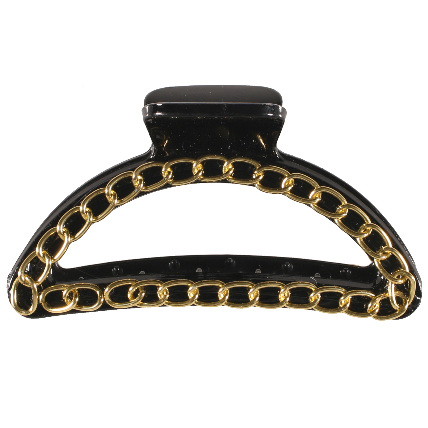 Description Pince crabe en plastique de couleur noire recouverte d'une chaîne en métal doré. Cliquez sur une matière, un thème, une couleur ou une collection pour voir tous les articles associés.