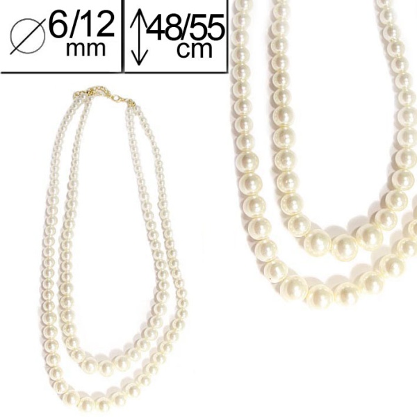 Description Collier fantaisie en métal doré et verre couleur crème. 2 rangs. Cliquez sur une matière, un thème, une couleur ou une collection pour voir tous les articles associés.