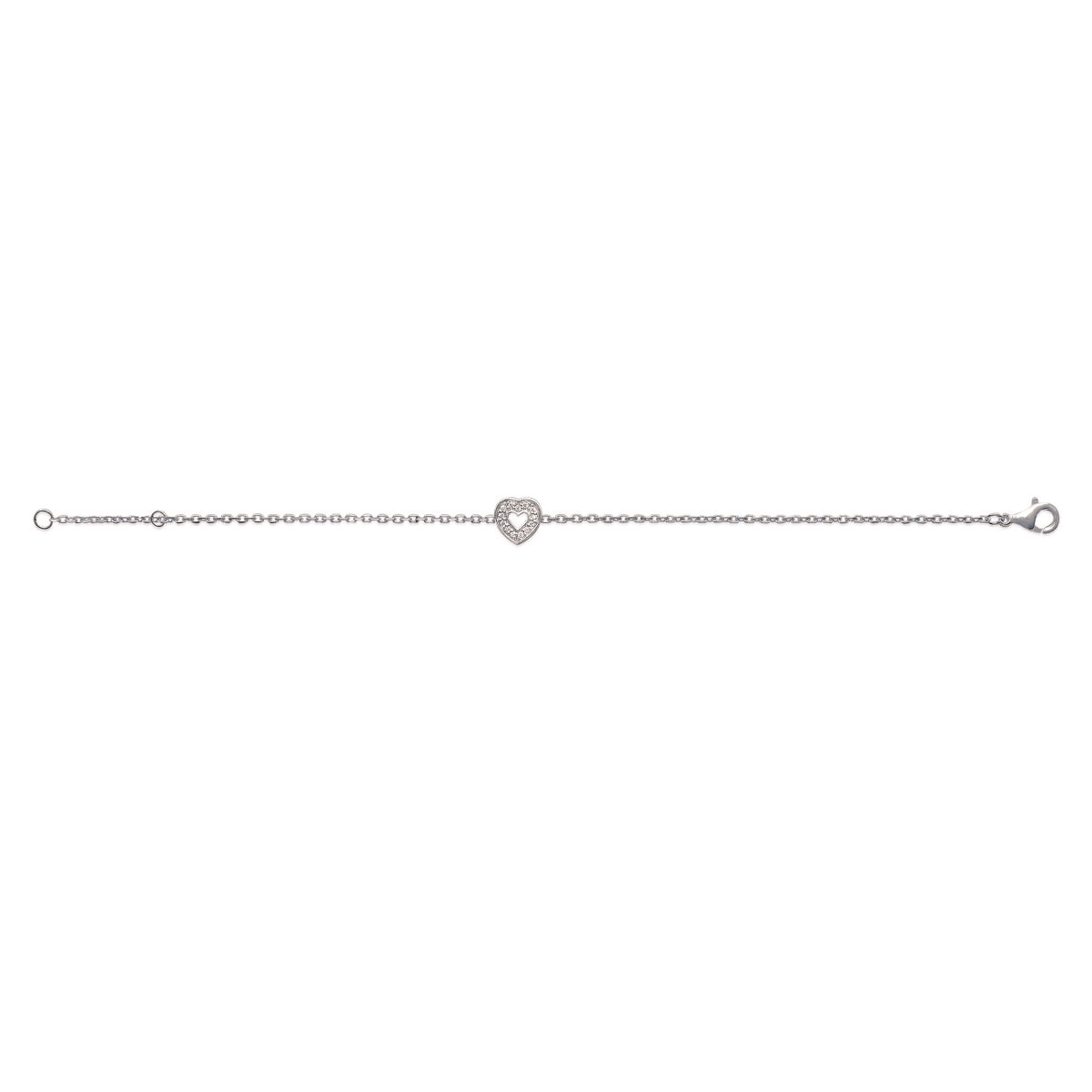 Description Bracelet en argent 925/000 rhodié et oxyde de zirconium. Longueur 18 cm [Guide des tailles] Largeur 9 mm Matière(s) Argent 925 rhodié , Zirconium . Afin de protéger votre bijou de l'oxydation naturelle de l'argent, il est recouvert d'une couche de rhodium (un métal rare et précieux) qui garantira sa brillance dans le temps et préviendra les risques d'allergie. Notez cependant, que le bijou est alors d'une teinte plus grisée et moins brillante que l'argent non rhodié. Poids d'argent 1,44 gramme(s) Fermoir Mousqueton Couleur(s) dominante(s) Transparent Public Adulte . Genre Femme . Saison Indémodable . Thème(s) Amour . Cliquez sur une matière, un thème, une couleur ou une collection pour voir tous les articles associés.