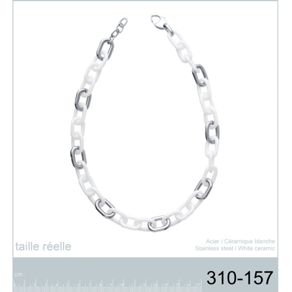 Description Collier en acier et céramique blanche. Longueur 45 cm [Guide des tailles] Largeur 13 mm Matière(s) Acier , Céramique . L'acier utilisé dans la bijouterie existe sous plusieurs qualités. Nous utilisons principalement la qualité 316L, qualité qui est utilisée en chirurgie. Cet acier est donc inoxydable et reste très résistant. Fermoir Mousqueton Couleur(s) dominante(s) Blanc Public Adulte . Genre Femme , Homme , Mixte . Saison Indémodable . Cliquez sur une matière, un thème, une couleur ou une collection pour voir tous les articles associés.