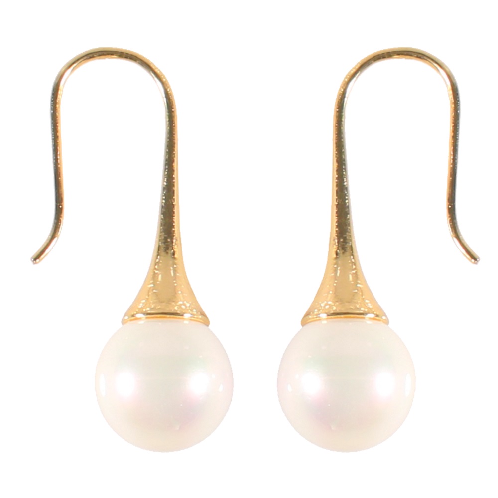 Description Boucles d'oreilles pendantes en métal doré et perles synthétiques. Cliquez sur une matière, un thème, une couleur ou une collection pour voir tous les articles associés.