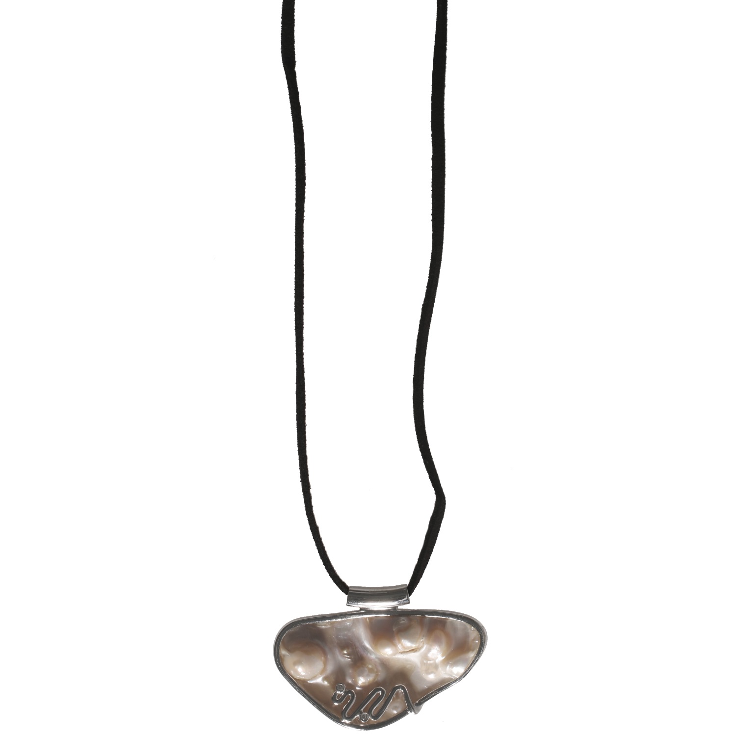 Collier avec cordon en suédine et pendentif en argent 925/000, nacre et oxydes de zirconium.