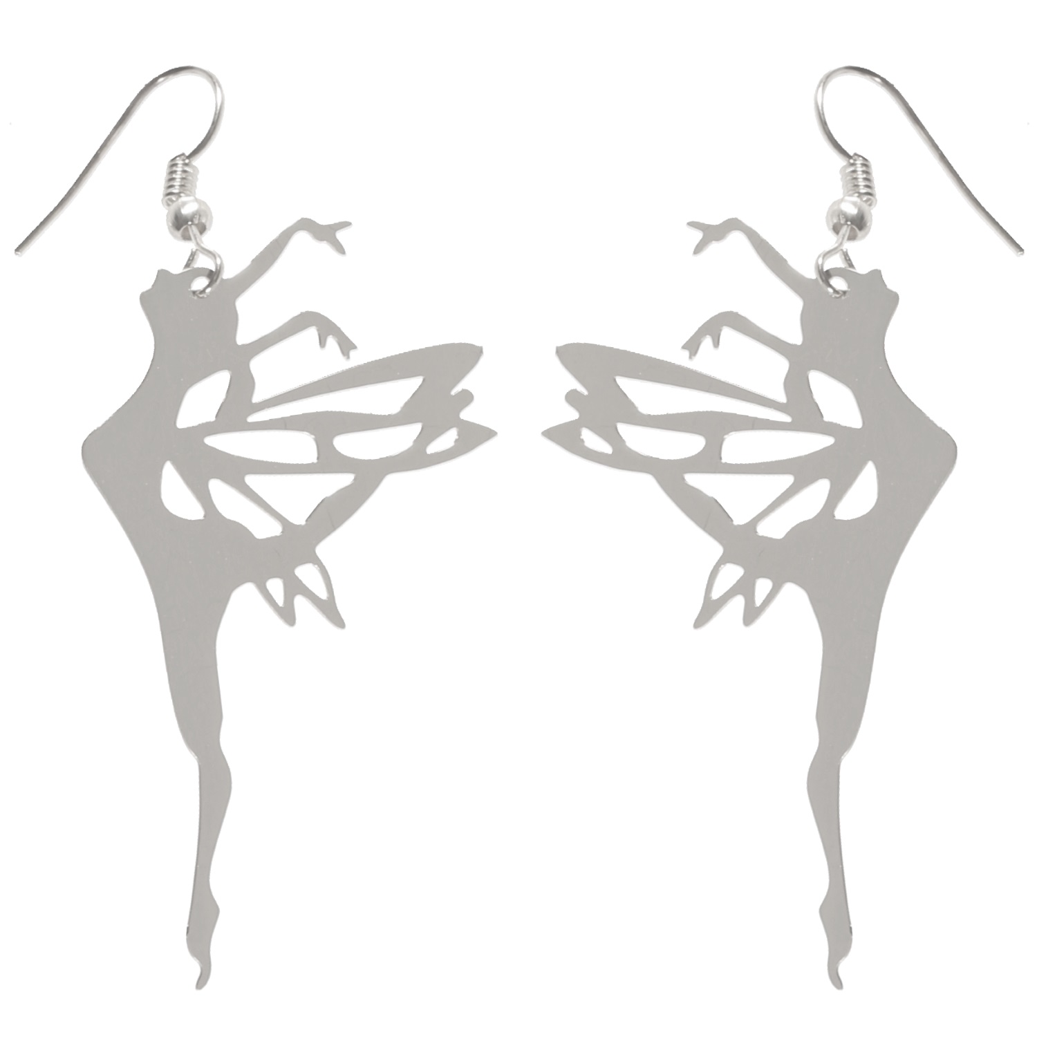 Boucles d'oreilles pendantes fées danseuses en métal argenté.