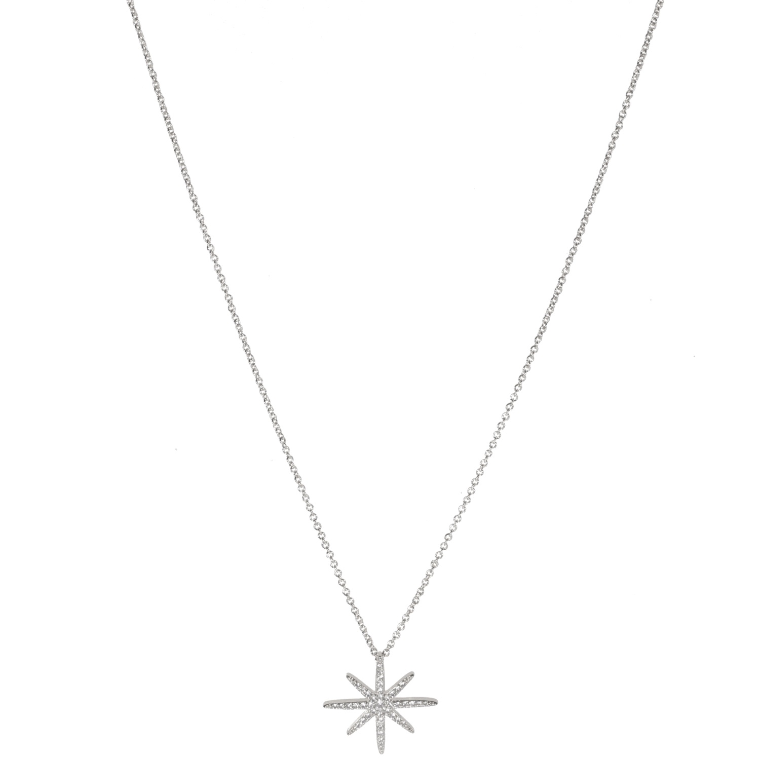 Description Collier avec pendentif étoile en métal argenté serti de strass blancs. Cliquez sur une matière, un thème, une couleur ou une collection pour voir tous les articles associés.