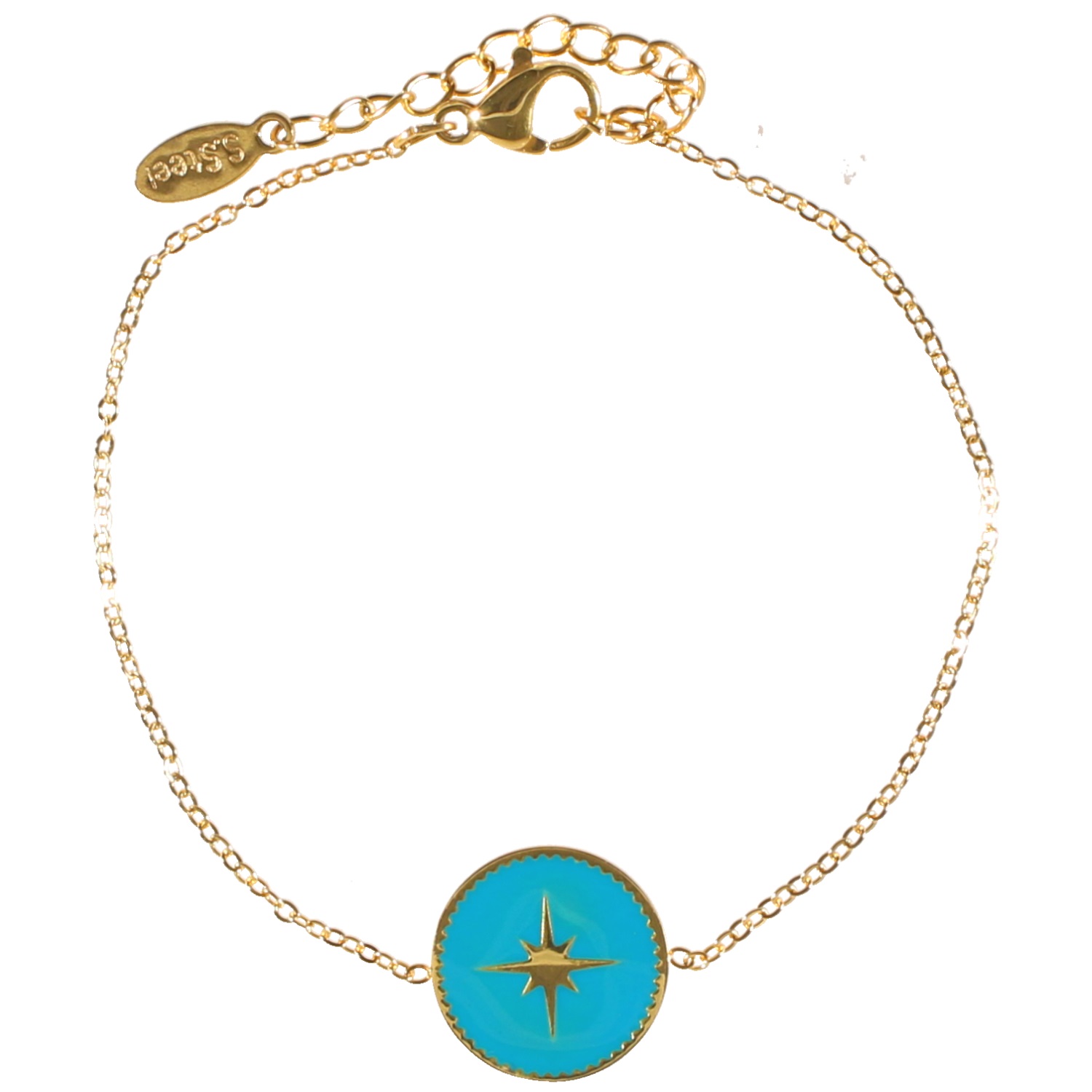 Description Bracelet en acier 316L doré et pastille avec étoile en émail. Cliquez sur une matière, un thème, une couleur ou une collection pour voir tous les articles associés.