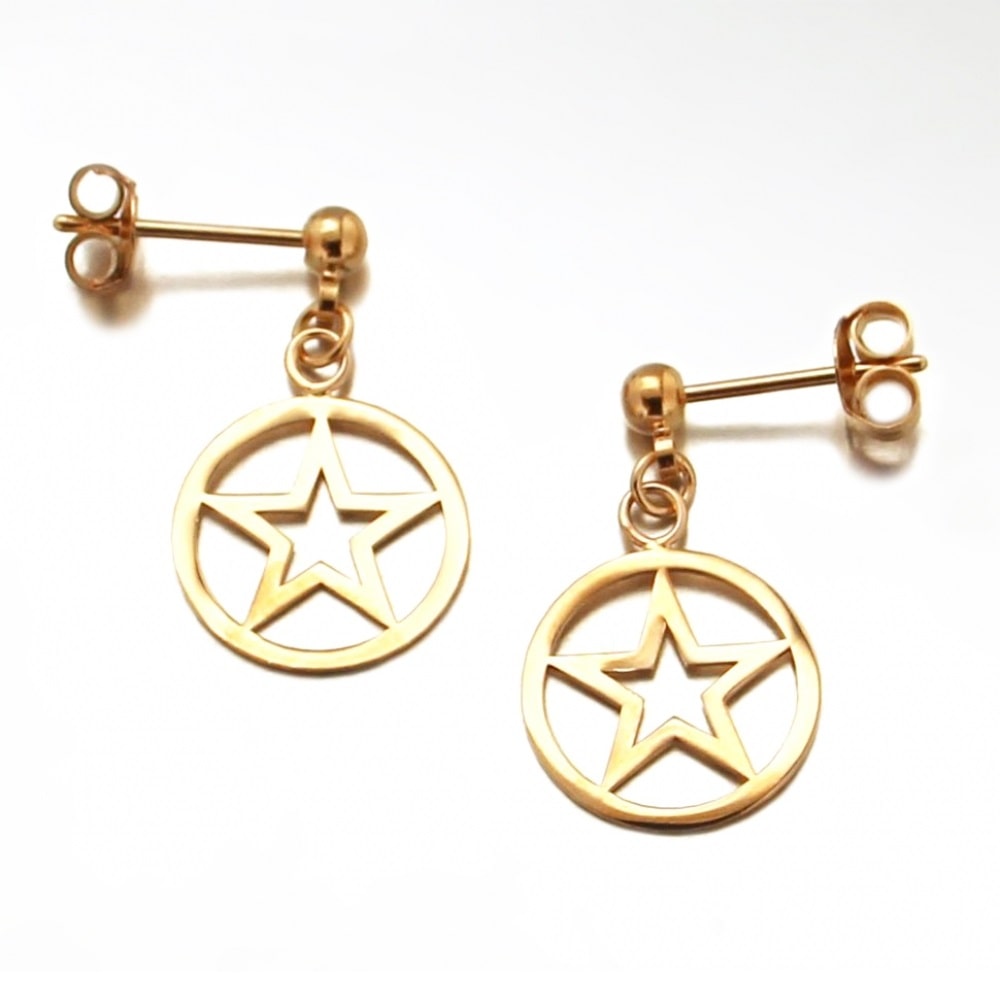Description Boucles d'oreilles pendantes étoiles dans le cercle en plaqué or. Largeur 12 mm Hauteur 20 mm Matière(s) Plaqué or . Nos bijoux en plaqué or sont faits sur une base de laiton et recouverts d'or 18 carats à 3 microns sans dispersion. Cela signifie que nous garantissons 3 microns d'or sur n'importe quelle partie du bijou. Sur la plupart de nos bijoux empierrés, nous montons à 5 microns d'or 18 carats. Pour finir, nous faisons également une finition avec de l'or 24 carats afin de donner un plus bel éclat à nos bijoux. Fermoir Tiges poussettes Couleur(s) dominante(s) Doré Public Adolescent , Adulte . Genre Femme , Fille . Saison Indémodable . Thème(s) Nature . Rayon en magasin G73 Cliquez sur une matière, un thème, une couleur ou une collection pour voir tous les articles associés.