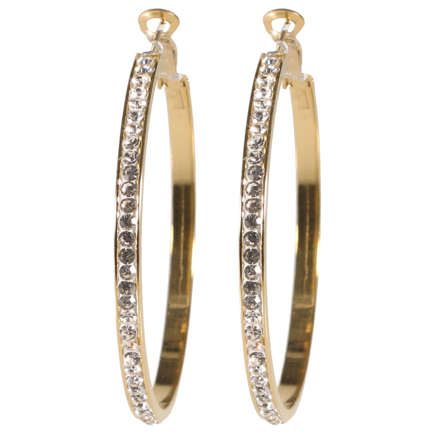 Description Boucles d'oreilles créoles en acier doré et strass en verre. Cliquez sur une matière, un thème, une couleur ou une collection pour voir tous les articles associés.