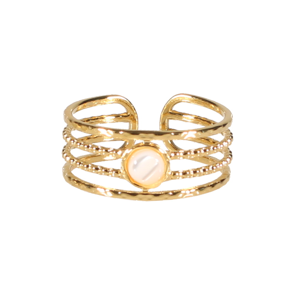 Bague quatre rangs en acier doré et une véritable coquille de nacre sertie clos.