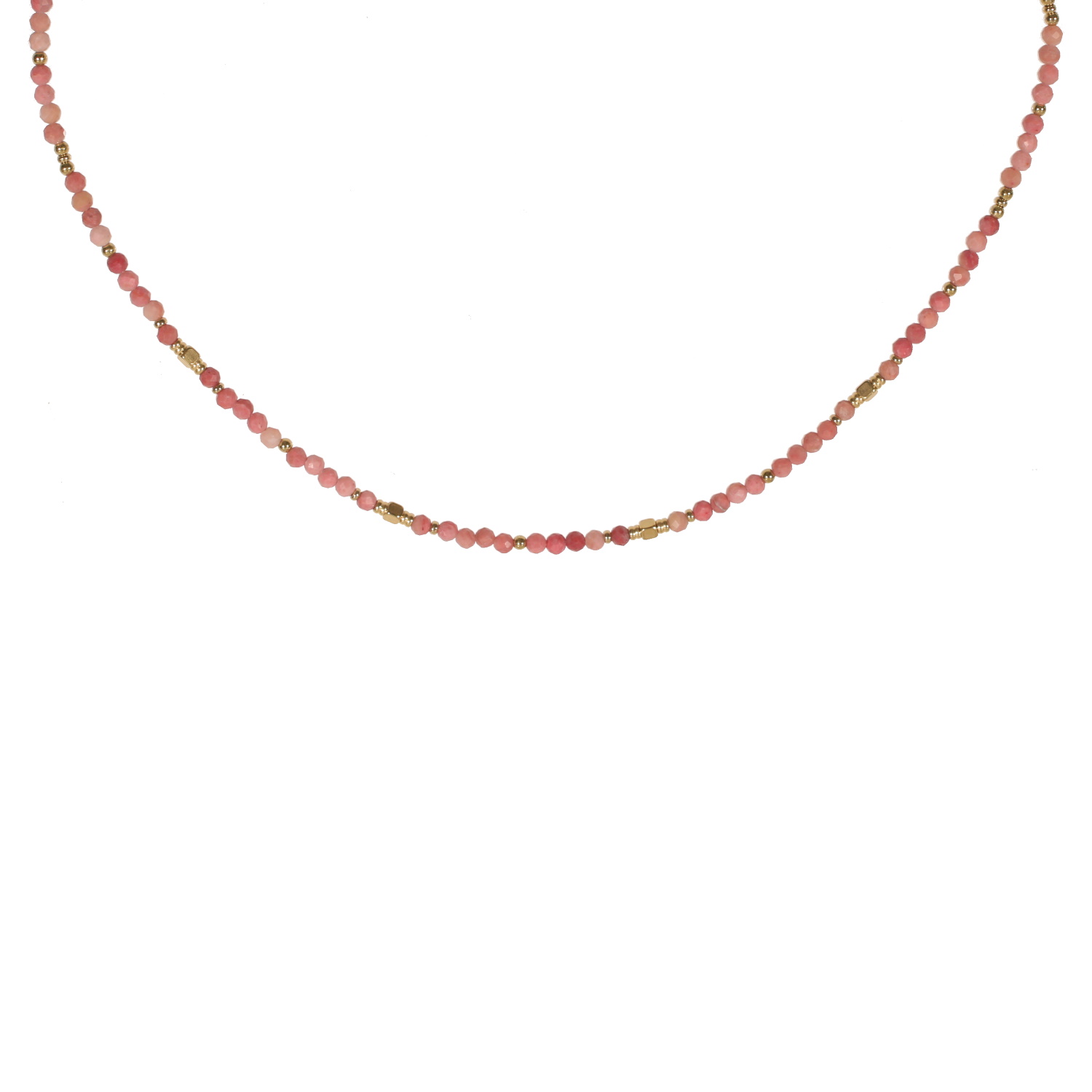 Collier composé de perles en acier doré et de perle en véritables pierre de rhodonite.